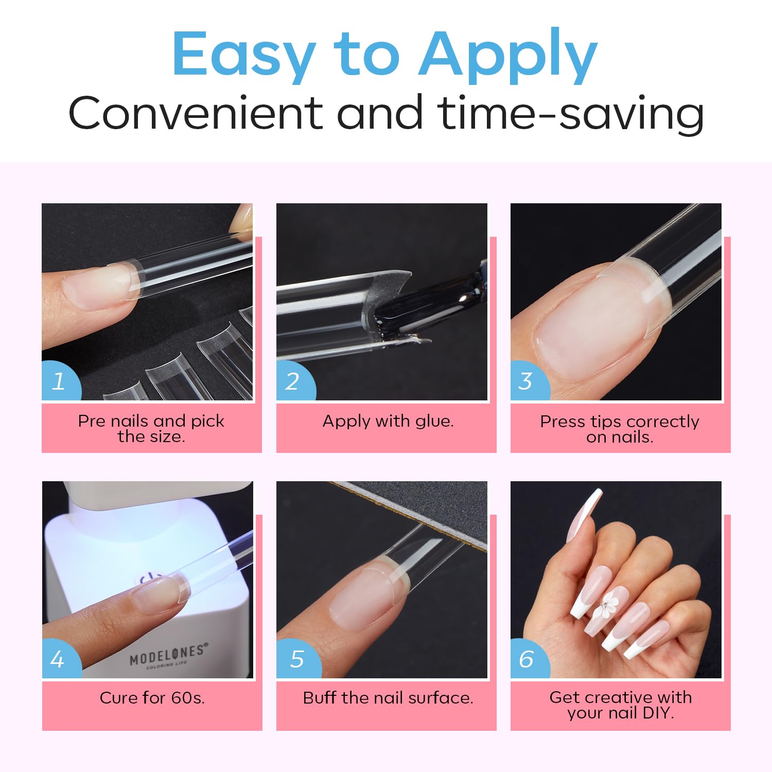 Upgrade High-Quality Material: Modelones nail tips are made with high-quality material, they are breathable, lightweight, and durable, making your nails look natural and nice. Have no toxins, no smell, and no harm to your nails and health. Pre-shaped and easy to apply