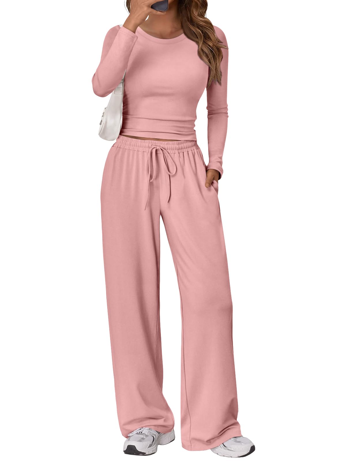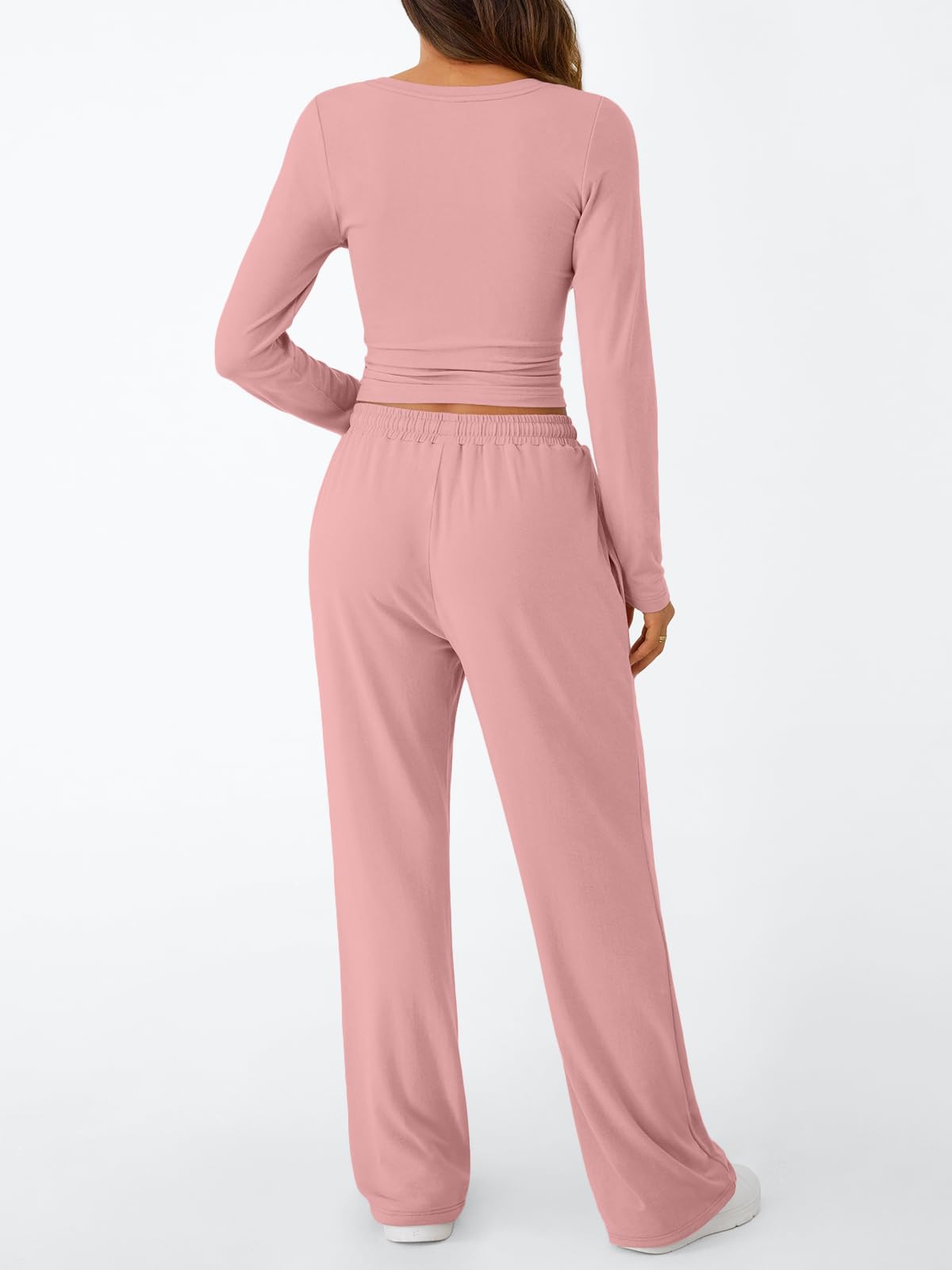 Design & Style: With a sleek crop top and wide-leg pants, this set is designed for those who love a mix of style and relaxation. The side ruching adds a touch of elegance, while the drawstring waist on the pants guarantees a comfortable fit that moves with you.