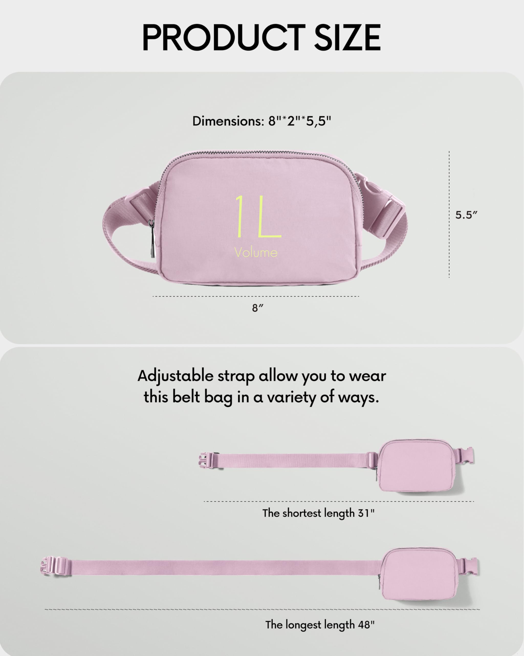 Versatile Style: Adjustable Strap allow you to wear this belt bag in a variety of ways. It can be carried as cross bag, shoulder bag, waist bag or handbag. It’s all up to you.