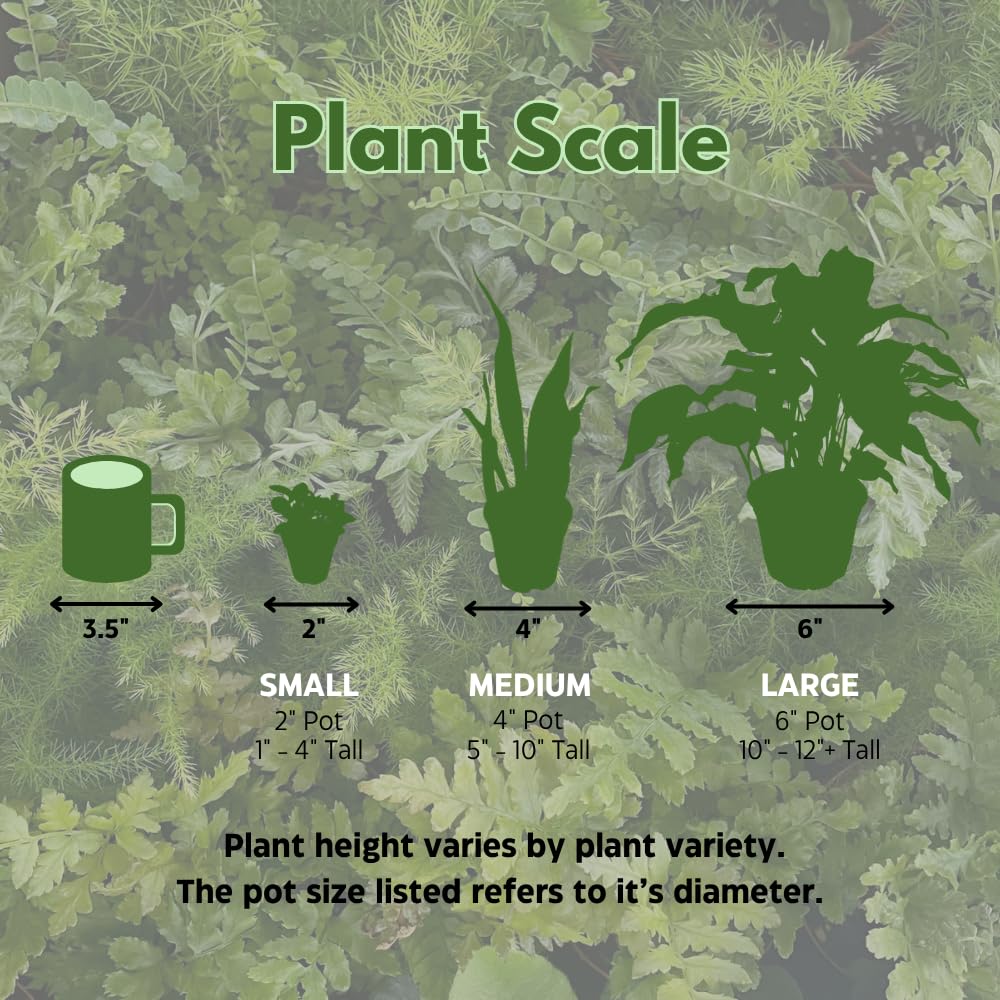 We offer live decorative plants sourced from professional growers and nurseries. Each plant is wrapped individually to contain all the soil in their pot. Plants are shipped in nursery containers. The diameter size of the pot is stated in the product title. Images are representative of the general variety and not an exact depiction of the individual plant received. Live plants may require appropriate care after delivery. Basic care information may be provided with your order.