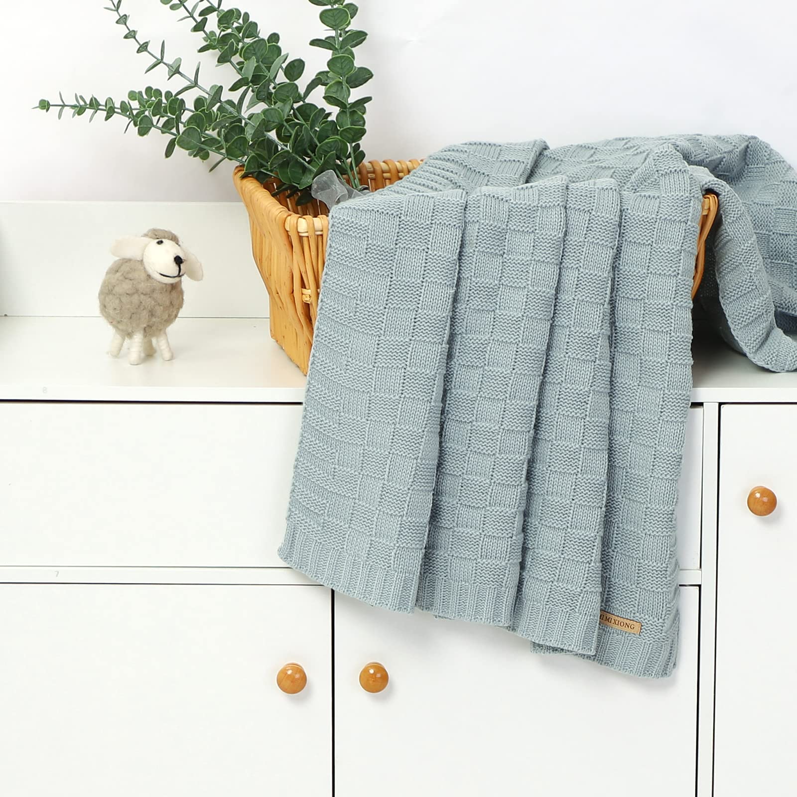 Timeless Cable Pattern & Colors: Delight in the beauty of the checker-pattern cable knit and the 11 delightful colors(light green, dark green, dusty blue, yellow, grey, pink, white, blue, brown, beige, and classic green), adding timeless elegance and childishness to this breathable baby blanket, match any nursery theme or personal style.