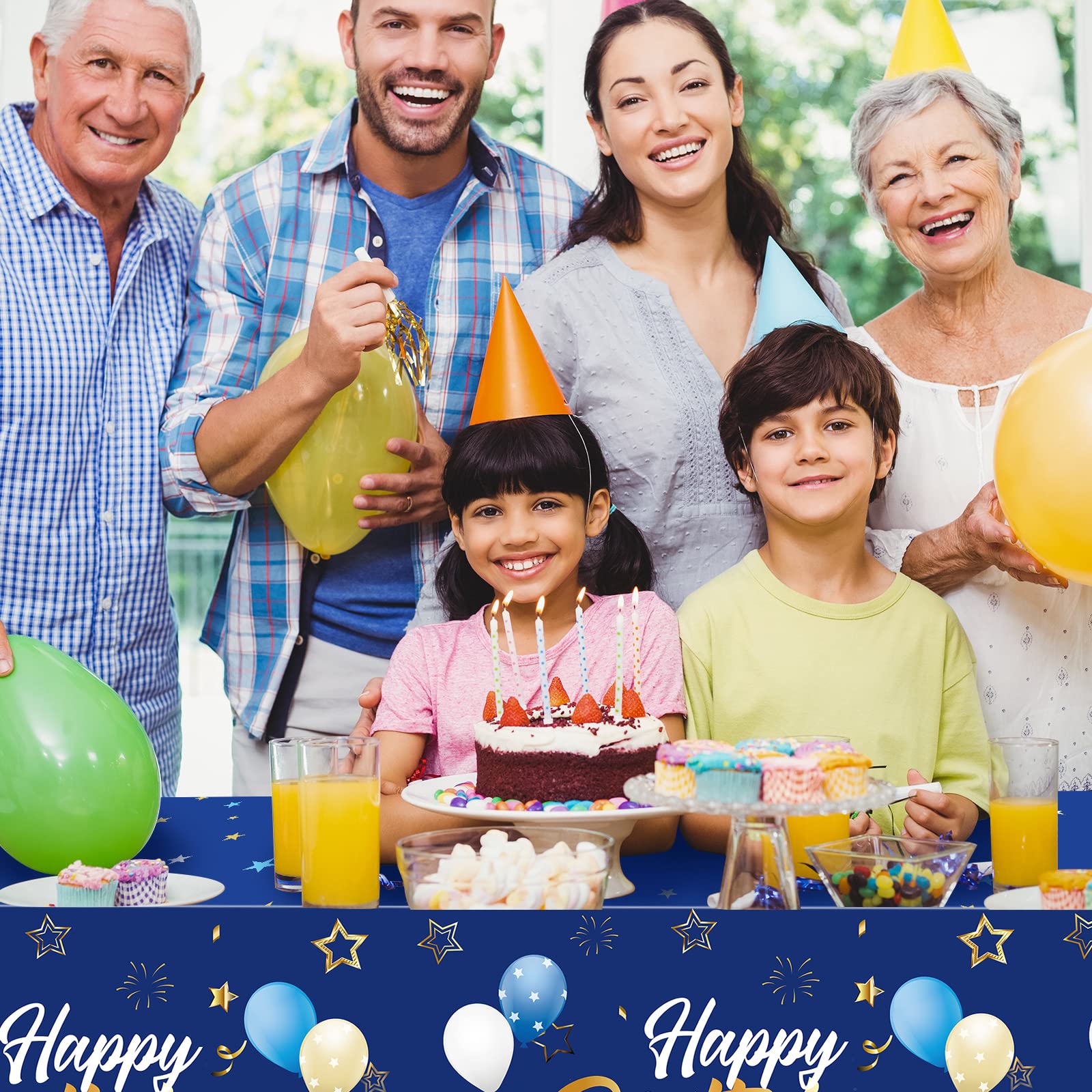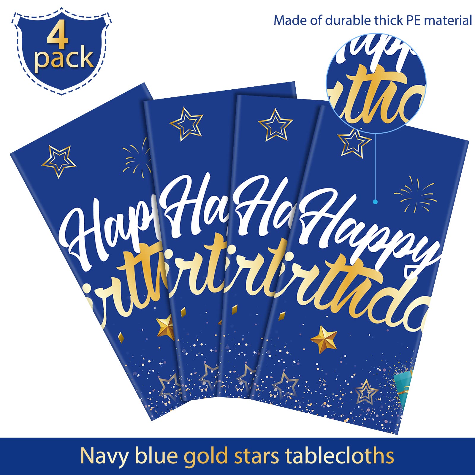 Wide Applications: this blue stars happy birthday tablecloth is suitable for children's birthday parties, baby showers, and newborn parties, can be applied on dining tables, dessert tables, display stands, etc. or hung on walls, doors, yards, gardens, and as a background cloth