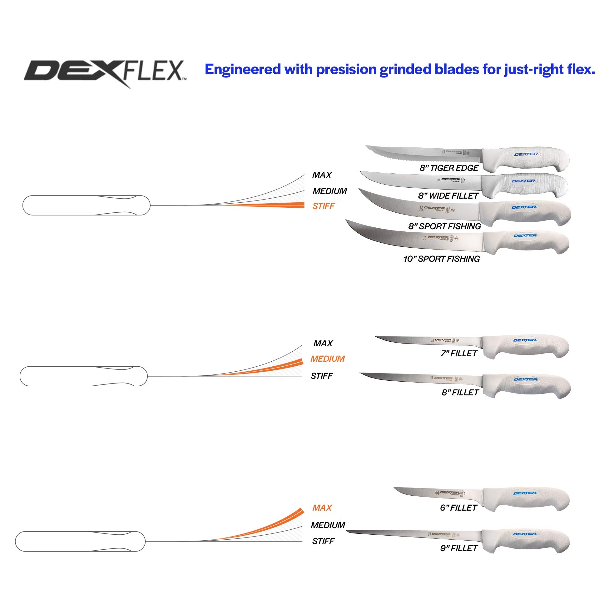 Dexter Russell SG138PCP SofGrip (24133) Fillet Knife, 8", wide, flexible, DEXSTEEL stain-free, high-carbon steel, non-slip, white, soft rubber grip handle, white handle, Perfect Cutlery Packaging, NSF, Made in USA