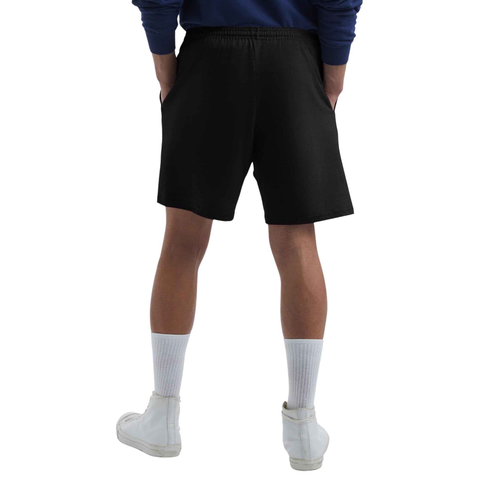 Description It's no wonder these cotton jersey shorts from HanesĀ® for men are bestsellers. These ultra-versatile knit shorts are just the thing to slip into after work, to wear to the gym, to relax in on movie night, or even to wear to bed. Simply styled, they pull right on, with an elasticized waist and adjustable interior drawstring. Handy side pockets hold keys and other essentials. These pull-on lounge shorts are a mid-thigh length with a 7.5" inseam. We suggest having several pairs of these comfortable cotton jersey shorts on hand. You'll wear them again and again.