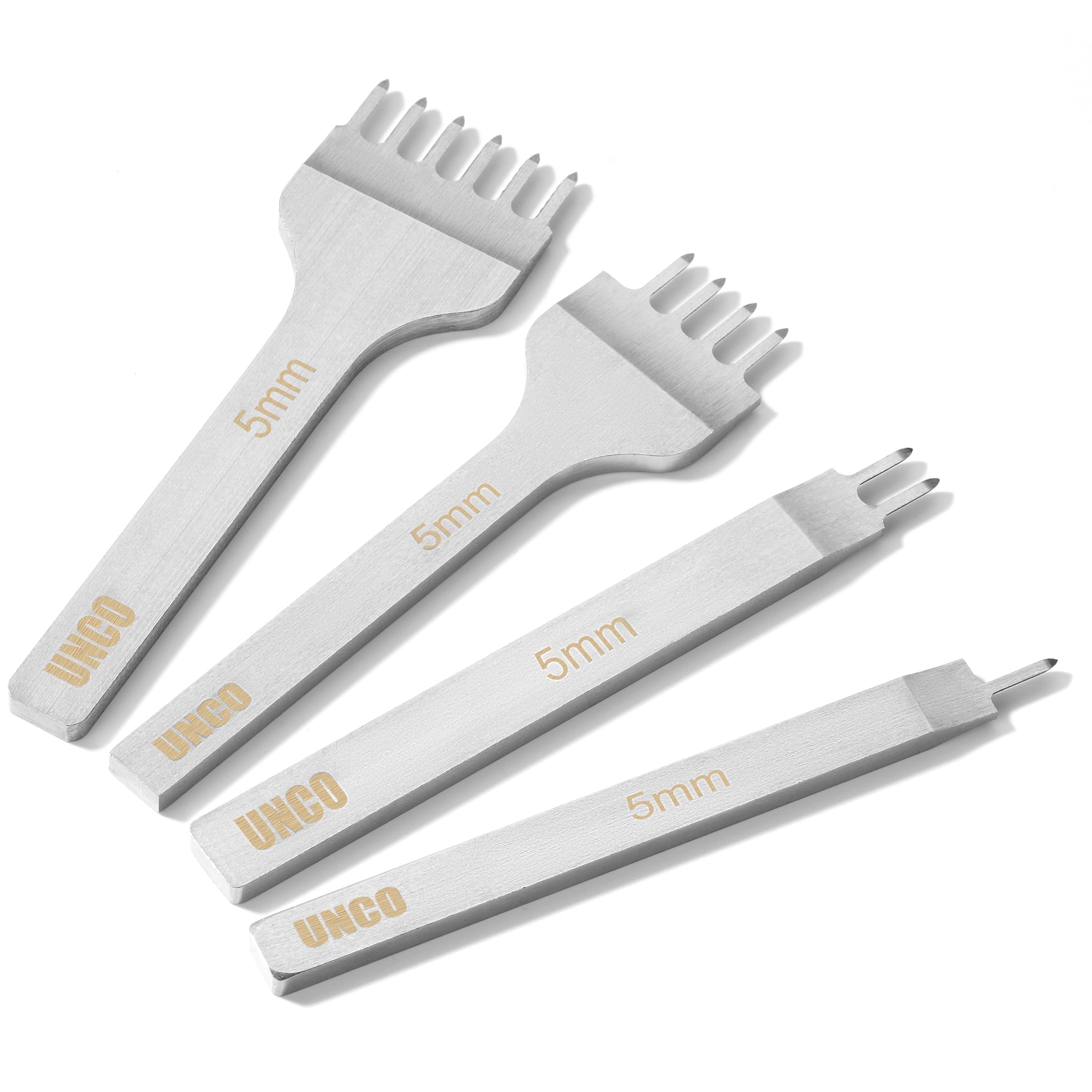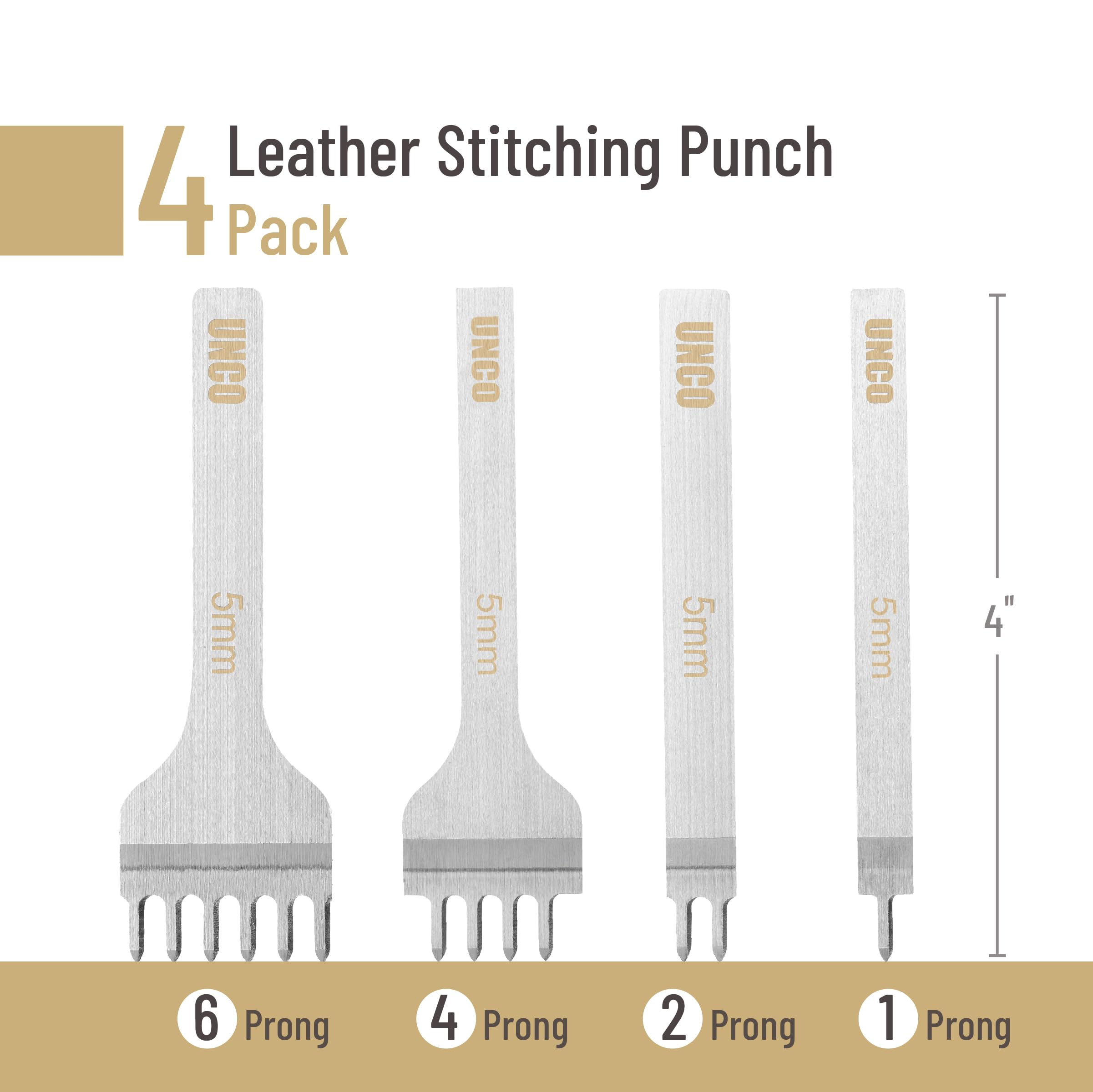 Comprehensive Set: UNCO punch stitching hole tool kit includes 4 essential pieces, each designed for creating precise and consistent stitching holes in leather and other materials. Durable Material: Made from high-quality stainless steel, these tools are built to last, providing reliable performance and resistance to rust and corrosion. Precision Design: Each tool features sharp, well-defined prongs that create clean and accurate holes, making your stitching projects more professional and refined. Versatile Application: Perfect for leather crafting, these tools are ideal for creating stitching holes in belts, wallets, bags, and other leather accessories. Easy to Use: With ergonomic handles and a user-friendly design, these tools are easy to handle and use, making them suitable for both beginners and experienced crafters.