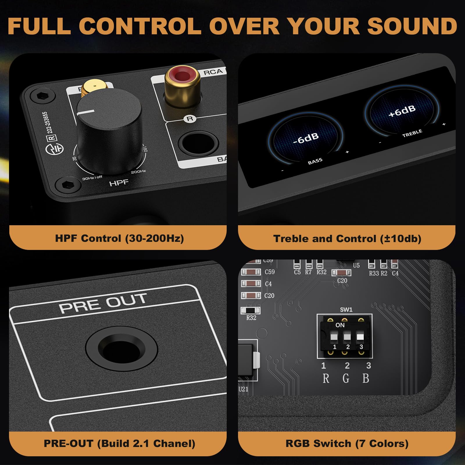 Engineered for True 2.1 Systems: The adjustable 30–200Hz high-pass filter removes low frequencies from the main output, letting your stereo speakers focus on mids and highs with better clarity, while PRE-OUT offers full-range signal to active subwoofers, amplifiers, or active speakers.