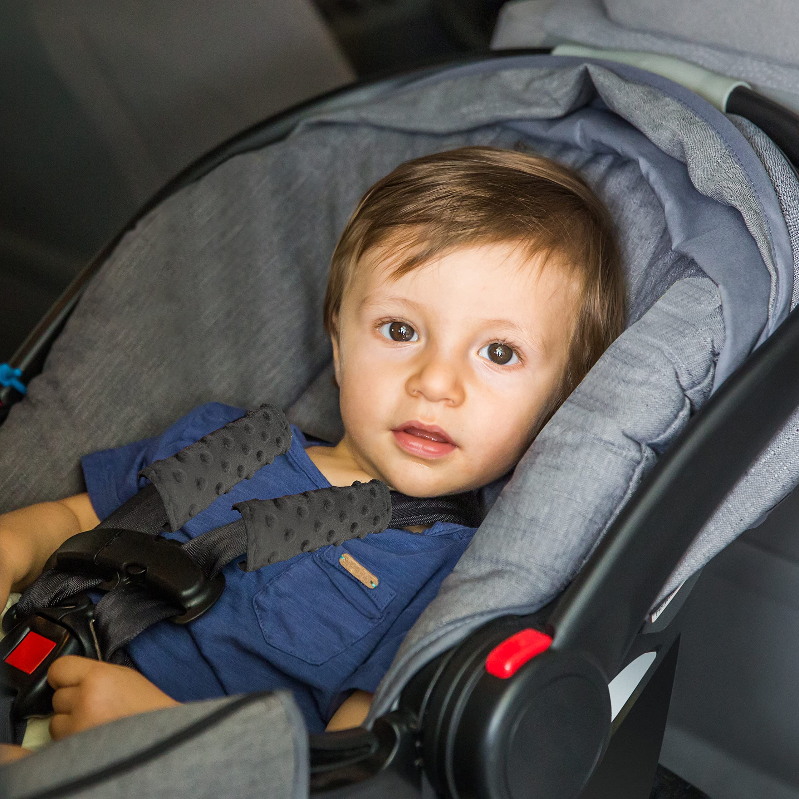 ❄️QUALITY MINKY: Our car seat strap pad is designed with high quality minky fabric. It is super soft for baby skin