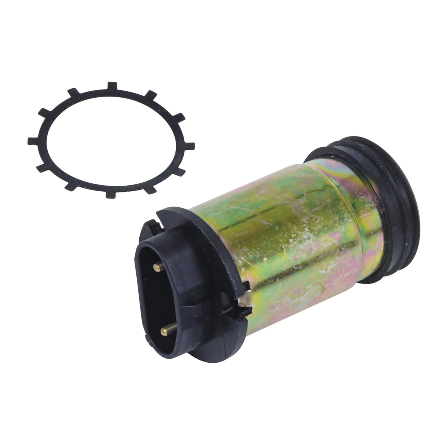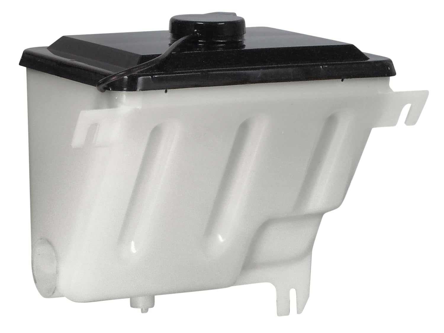 This new reproduction windshield washer reservoir and pump is compatible/replacement for 1971-77 Bronco; 1971-72 F-Series pickup truck, except Power Pak; 1973-79 F-Series; and 1971-73 Mustang and Cougar. This is a translucent white, plastic reservoir with black top and cap. Replaces OEM part numbers D1TZ-17618-B and E0AZ-17664-A.