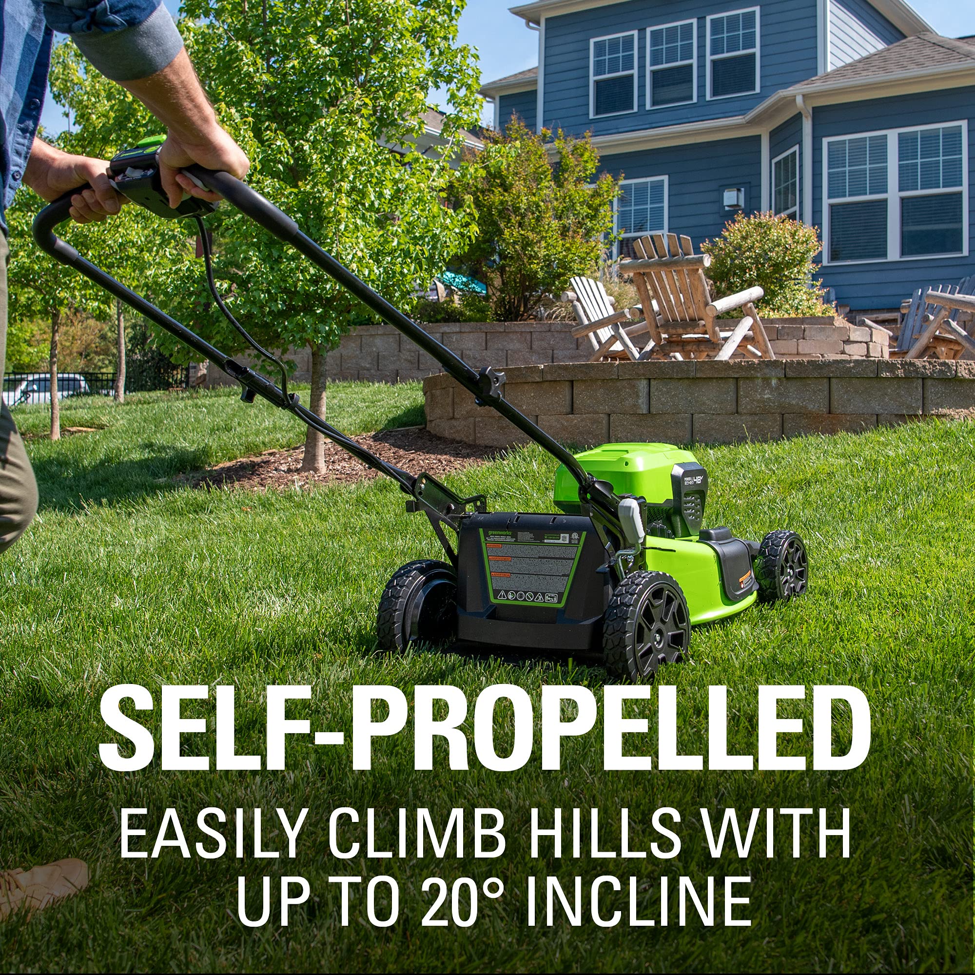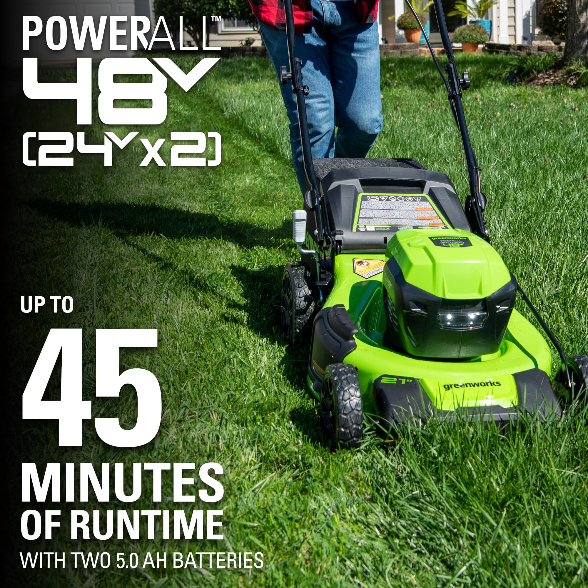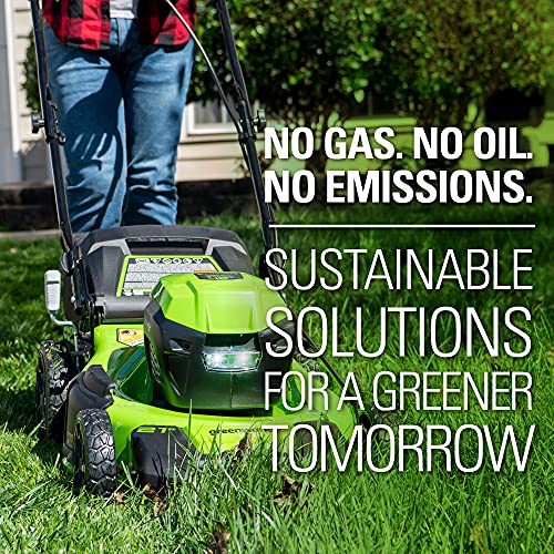 Effortless, Powerful, and Gas-Free Lawn Care The Greenworks 48V (24V x 2) 21" battery-powered Self-Propelled Lawn Mower delivers professional-grade cutting power without the noise, fumes, or maintenance of gas mowers. Perfect for lawns up to 1/4 acre, it combines two 24V 5.0Ah lithium-ion batteries for 48V performance—giving you up to 45 minutes of runtime (varies by grass thickness). Why You’ll Love It: Self-Propelled & Adjustable – Variable-speed rear-wheel drive tackles hills easily, while 7 cutting heights adapt to any lawn. 4-in-1 Flexibility – Choose mulching, rear bagging, side discharge, or turbo mode for heavy debris. Brushless Motor Tech – 30% quieter than gas, with more torque, longer life, and zero vibrations. Smart Battery System – Batteries charge phones/devices via USB and work with 125+ Greenworks tools. No More Gas Hassles – Instant electric start, no oil changes, and eco-friendly operation. Included: 21" electric Mower 2x 24V 5.0Ah Batteries Dual-Port Rapid Charger 3-Year Limited Warranty Upgrade Your Yard—Without the Noise & Mess!