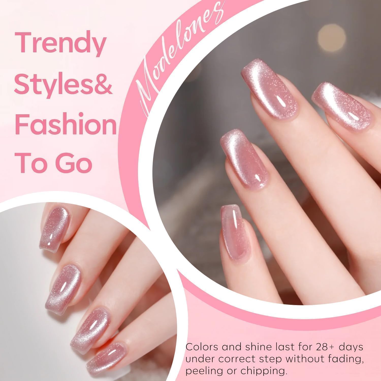 28 Days No Peel-off & Bubble-free: The Modelones exclusive formula enables the magnetic gel nail polish to anti Air-bubble and Peel-off, which was adjusted after 72 tests. Color Lock Tech.and High Durability make it stay last longer and bring you brilliant shine finish. Spend 3 minutes and get long-lasting for 28+ days under proper apply way.