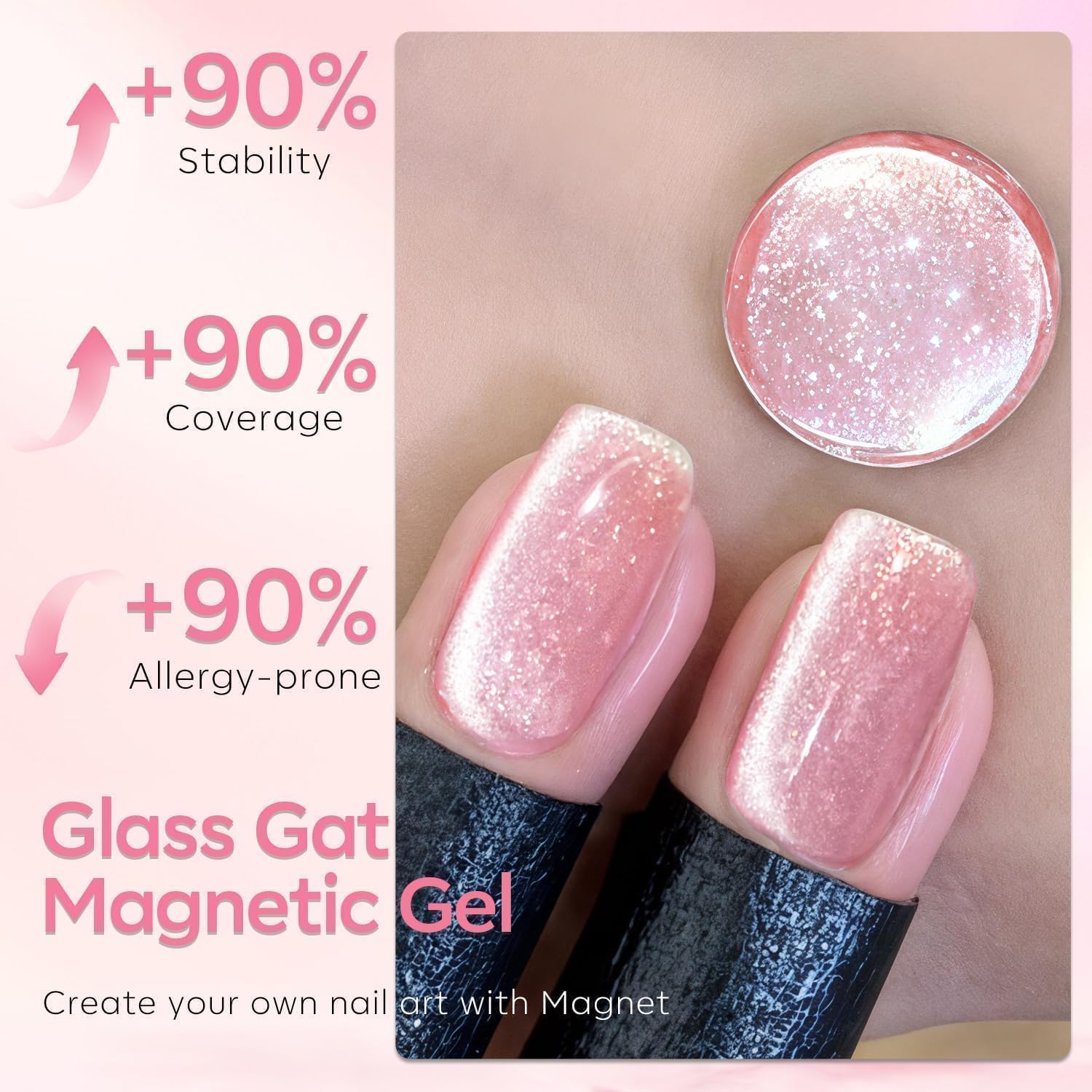 Overlay Different Base Colors: The Pink cat eye nail gel can overlay any base color gel to emit different holo effects,suitable for all occations and clothing styles. Take it home and have a try to feel its magic.