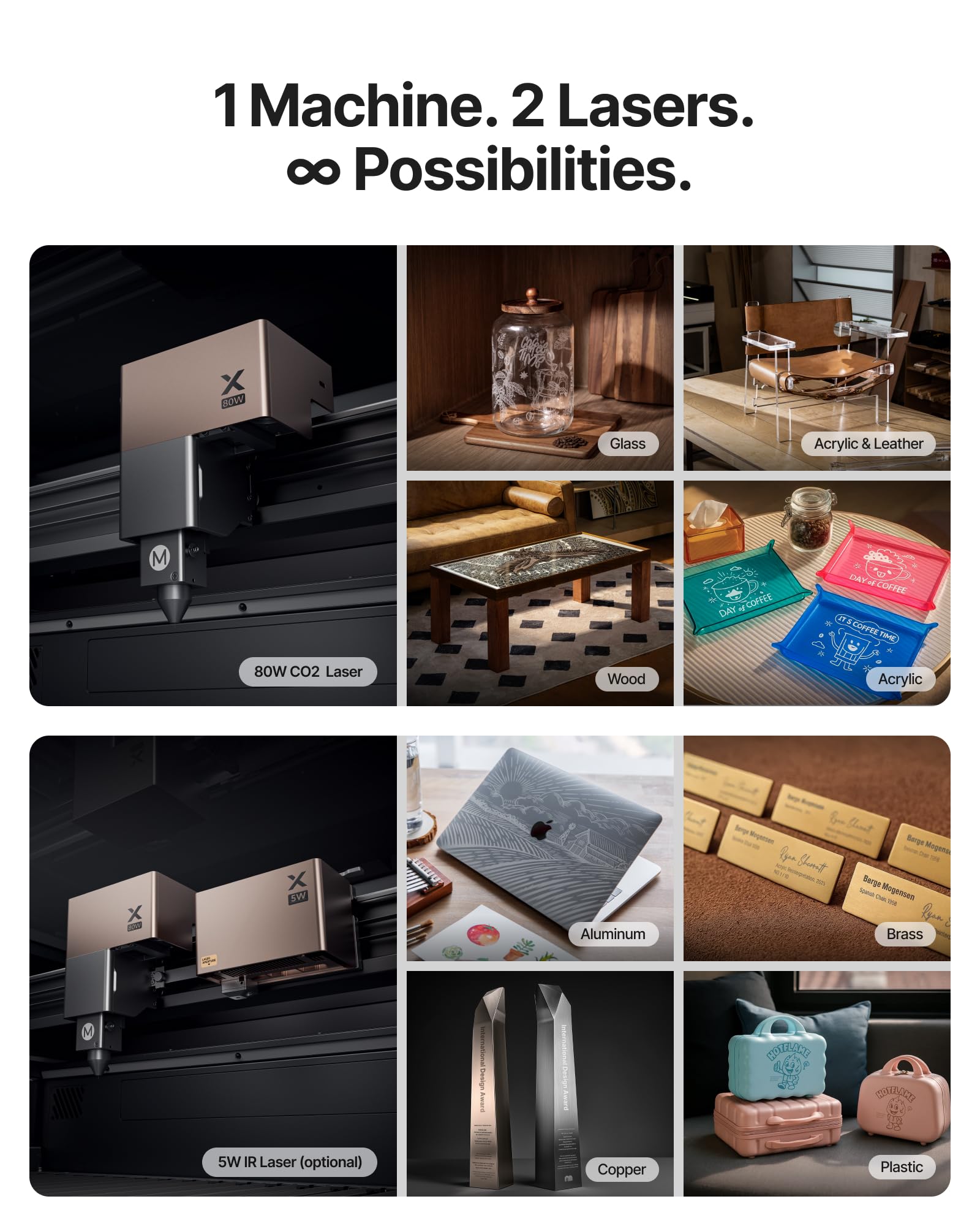 Flagship 80W CO2 Laser Power for Industrial-Grade Cutting: Unleash powerful performance. This professional-grade xTool P3 CO2 laser engraver effortlessly cuts 20mm wood and 25mm acrylic. At 1200mm/s max speed, this laser cutter machine masters materials diode laser engraver can't touch (like clear acrylic) with cleaner, faster results, making it the ideal laser cutting machine.
