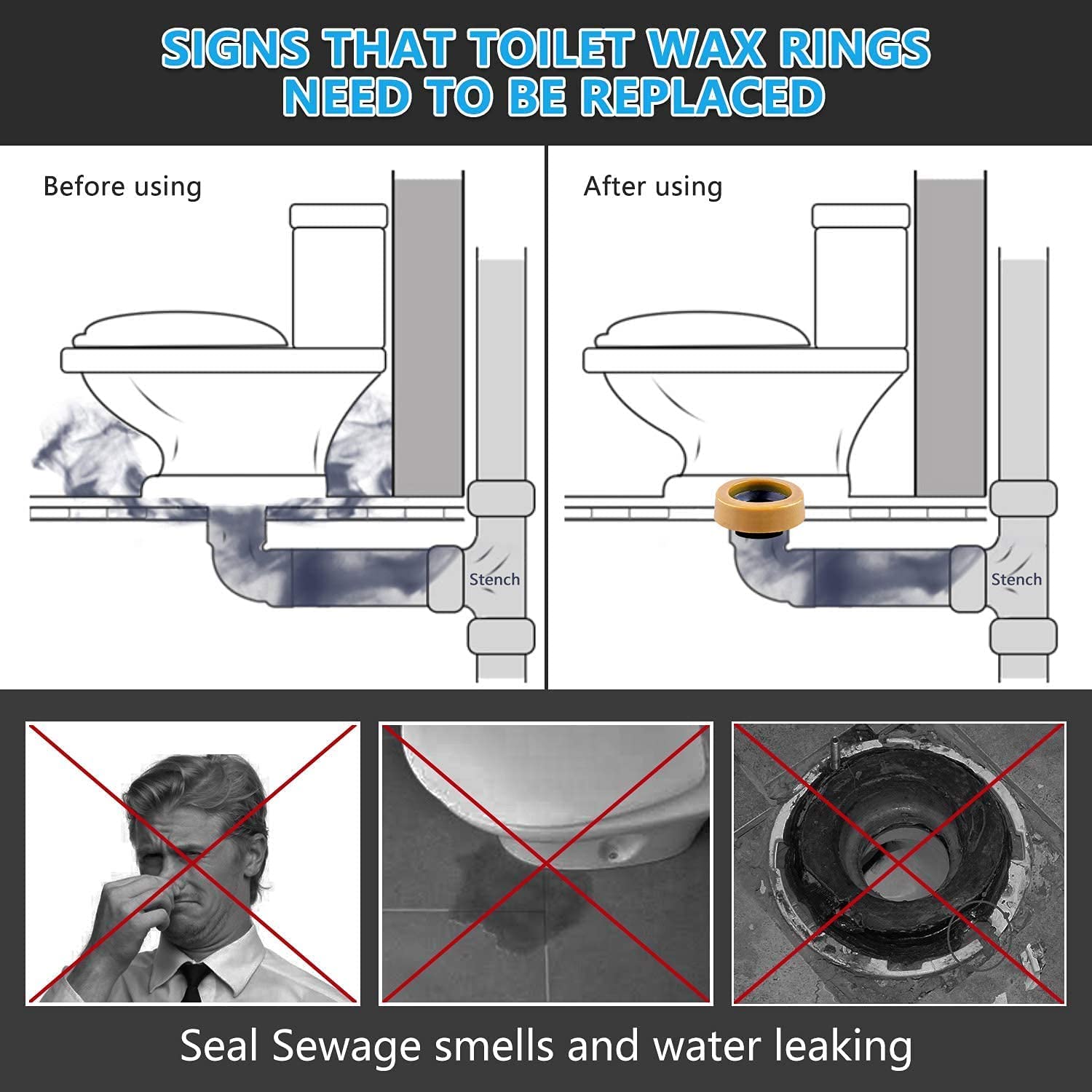 PREVENT LEAKS & ODORS: Forms a gas, odor and water tight seal between toilet bowl and waste line
