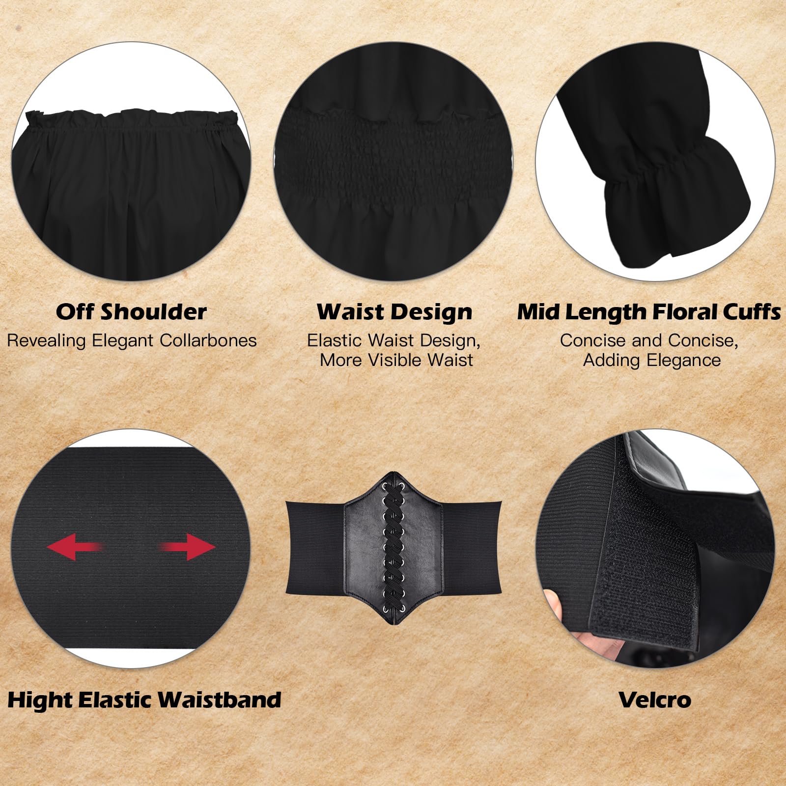 Comfortable Pirate Costumes: The top skirt is made from a blend of polyester and spandex to ensure comfort and stretch, breathable and soft; the steampunk corset is made from PU leather, adding a touch of glamor and elegance.