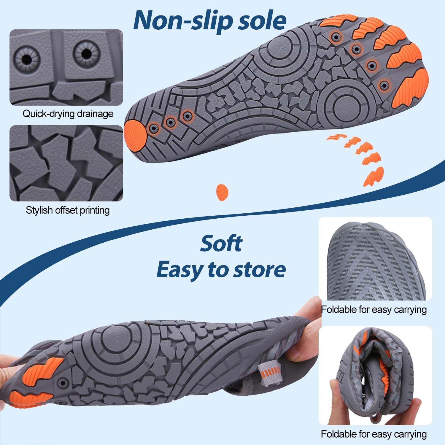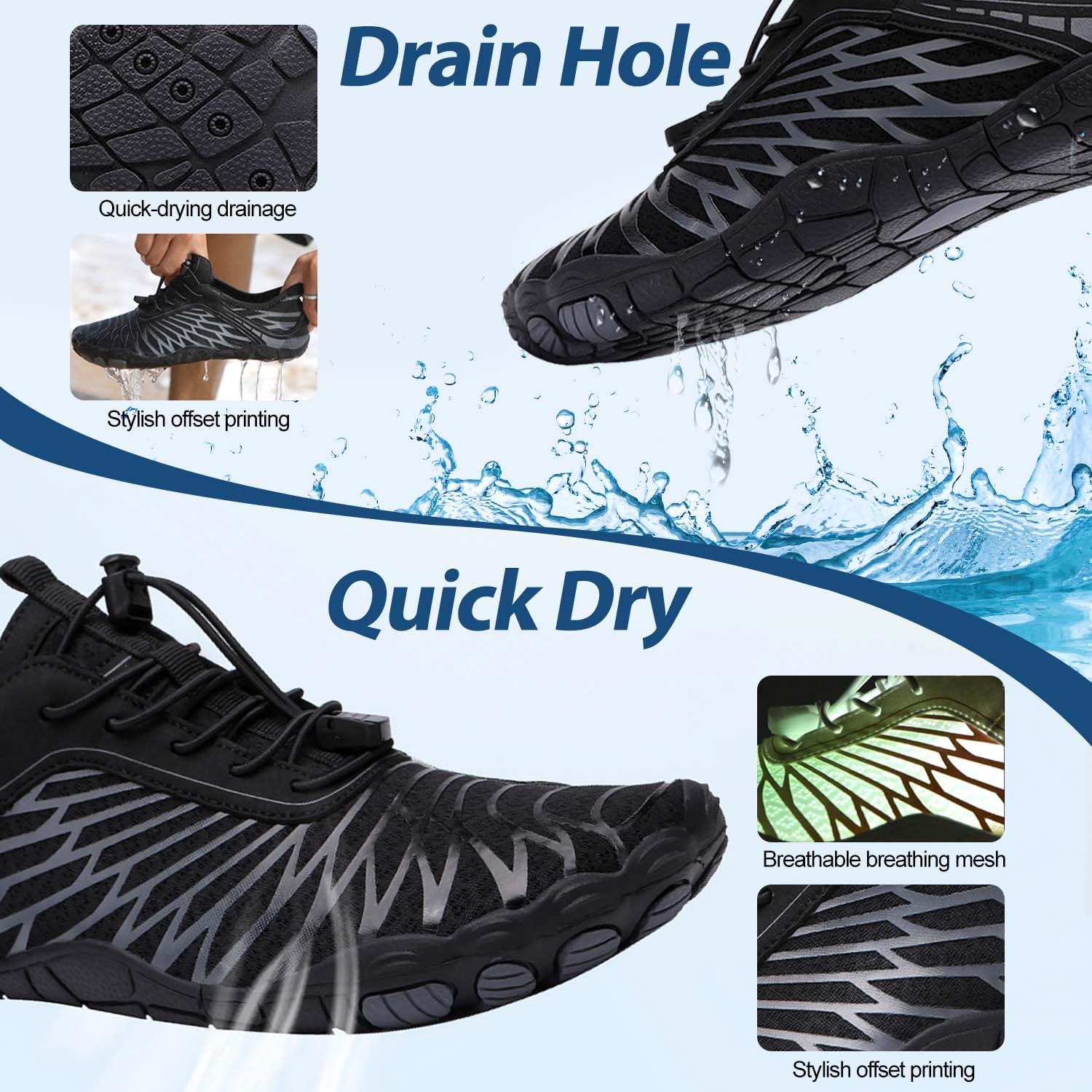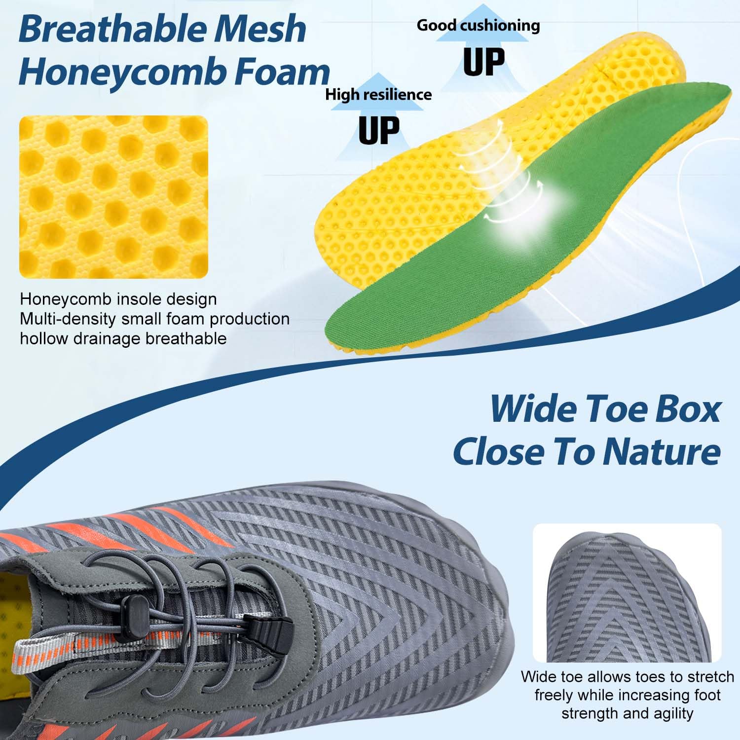 Non-Slip Sole - Advanced multi-directional treads and ultra-grip rubber conquer wet rocks, mud, and slippery surfaces. Deep grooves channel water while flex grooves mimic natural foot motion, trail runs, or alpine hikes without sacrificing barefoot agility.