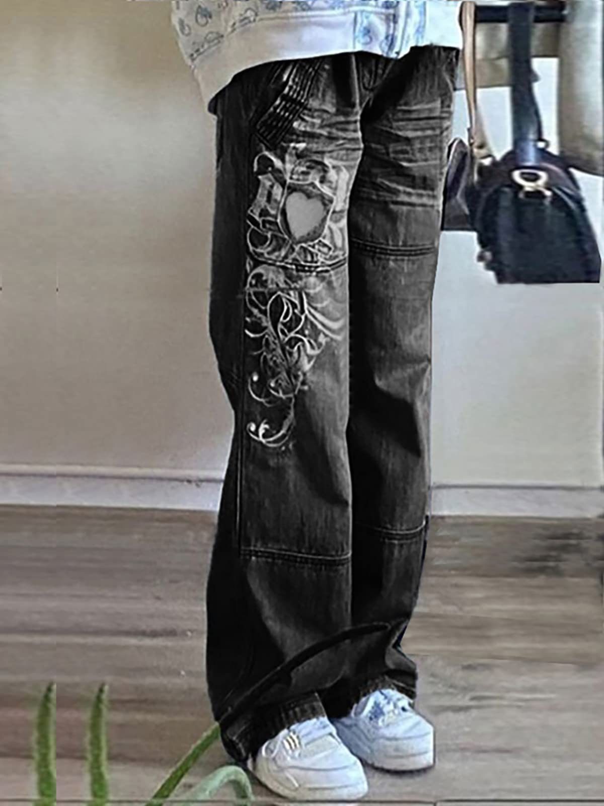Customized size and material, our Low Rise Heart Pattern Baggy Jeans are only sold in XinruiUS !!! The other will not really deliver Design: Low rise waistline, wide straight leg, basic 4 pockets, button fly, zipper closure