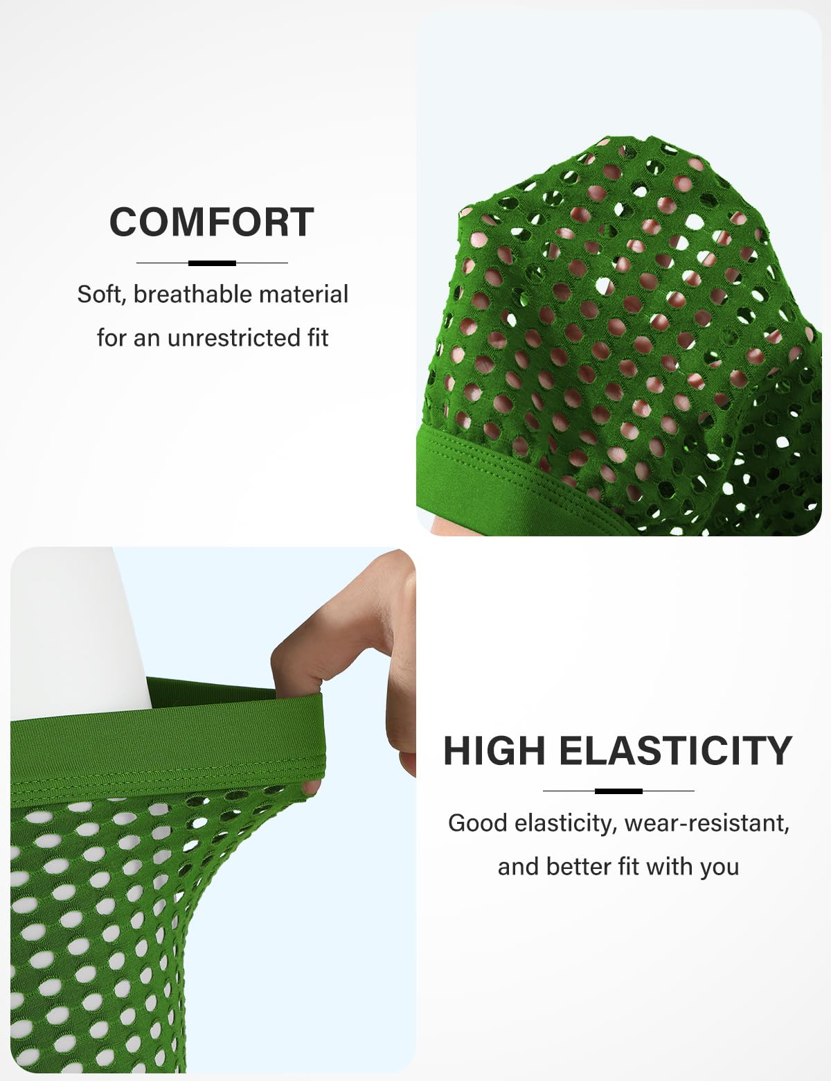 Ventilated design make you feel free and suitable for daily wear at home or outdoor activities and with the 3D pouch design which will keep everything in place.