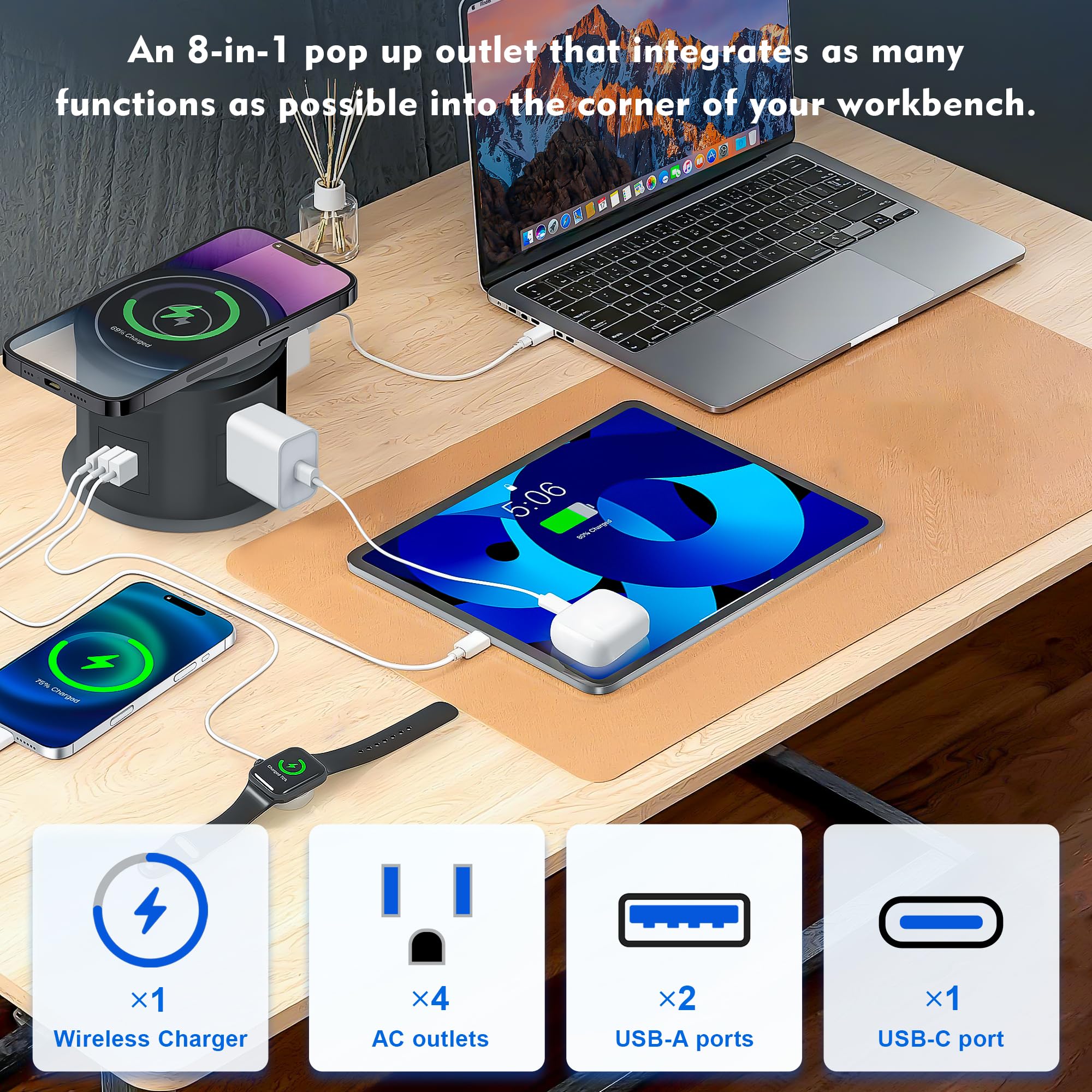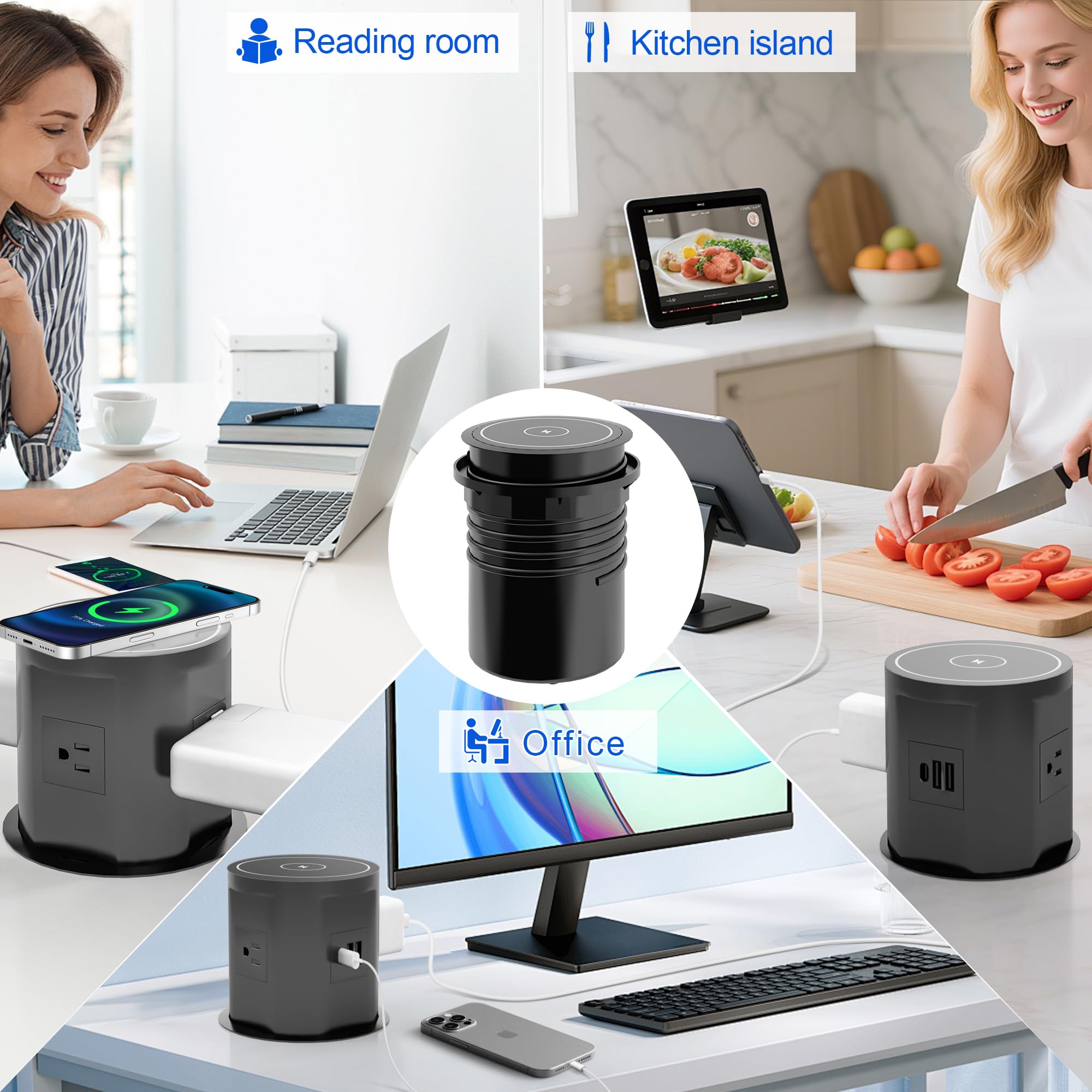 Enhance the experience:Tailored to provide home decor essentials, this pop up outlet for kitchen countertops, conference desks, study rooms, island desks and more. Provide you with the outlets you need while keeping your desktop tidy, enhancing your office and work experience.