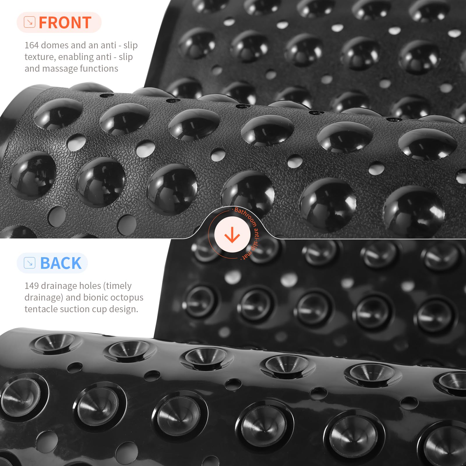 FUNCTIONAL BATHROOM MAT: Our versatile bath mat features a domed design resembling pebbles, offering a massage-like experience during shower time. The irregular texture on the surface enhances friction and prevents slipping. Additionally, with 149 small drain holes, water circulation is optimized and smoother drainage.