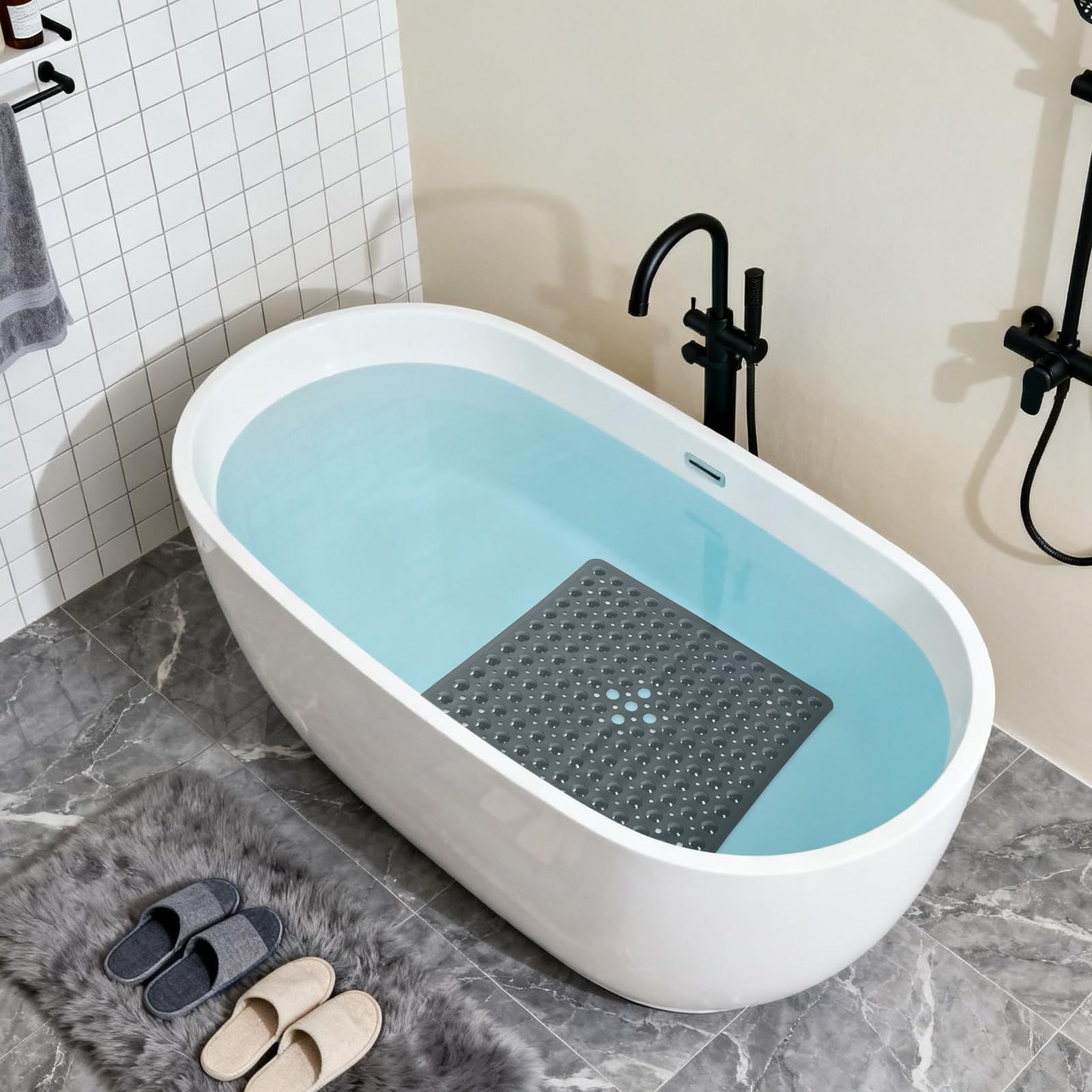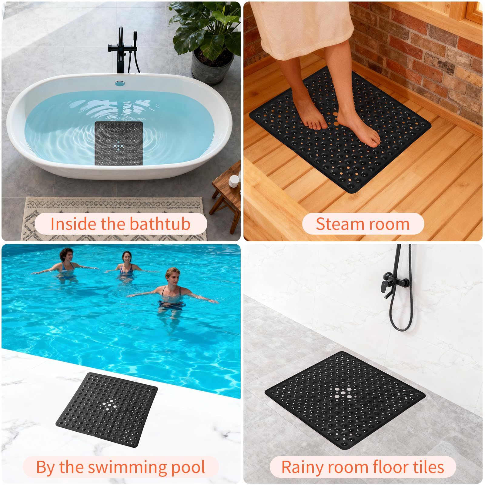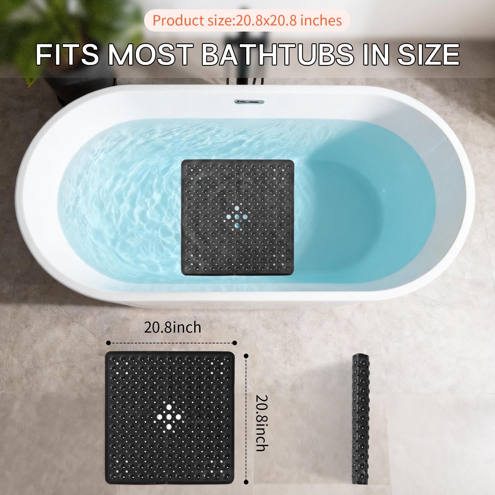 NON-SLIP LARGE BATH MAT: Our non-slip large bathtub mat offers superior coverage with its 20.8×20.8 inch(Approximately 53×53cm, with an error of about 1cm) size, maximum coverage for the bathtub floor. Equipped with 164 special large suction cups, this mat securely stays in place on smooth, clean surfaces, making it ideal for home, spa, sauna, gym baths, and showers.