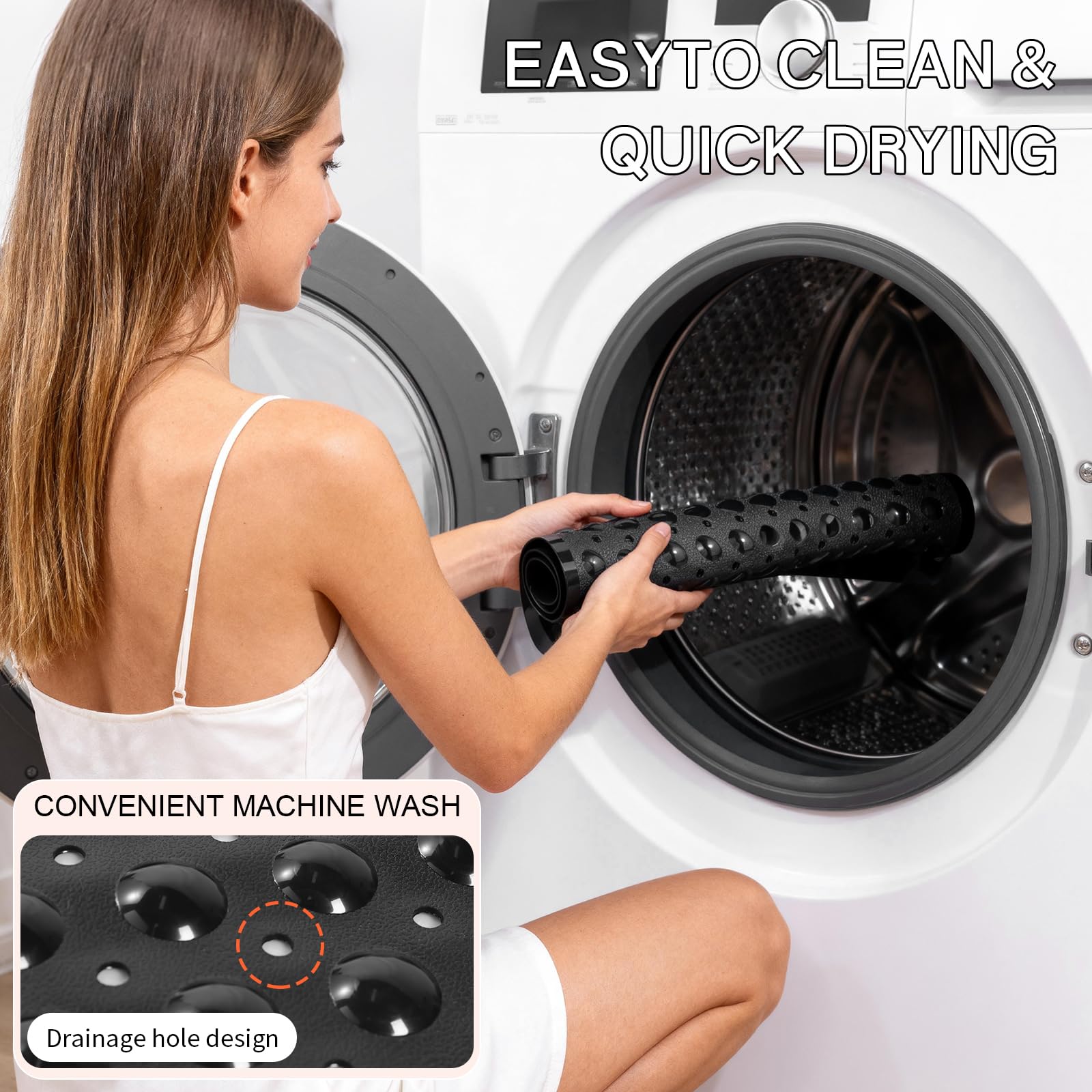 MACHINE WASHABLE: Conveniently machine-washable and easy to maintain, this non-slip bathtub mat can be effortlessly cleaned. Simply toss it into the machine and wash it on a cold water setting. Afterward, hang it to dry. We recommend periodically rinsing and air-drying the shower mat.