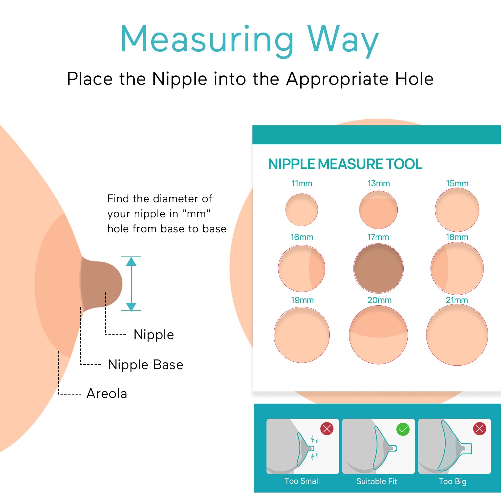 Choose the Right Flange Insert: The size of the flange insert is very important for comfortable and efficient pumping. Some mothers experience nipple swelling while expressing, so it is important to observe the appearance of the nipple during pumping. When pumping, your nipples should not rub or squeeze within the flange channel, suggest you select the appropriate size flange insert.