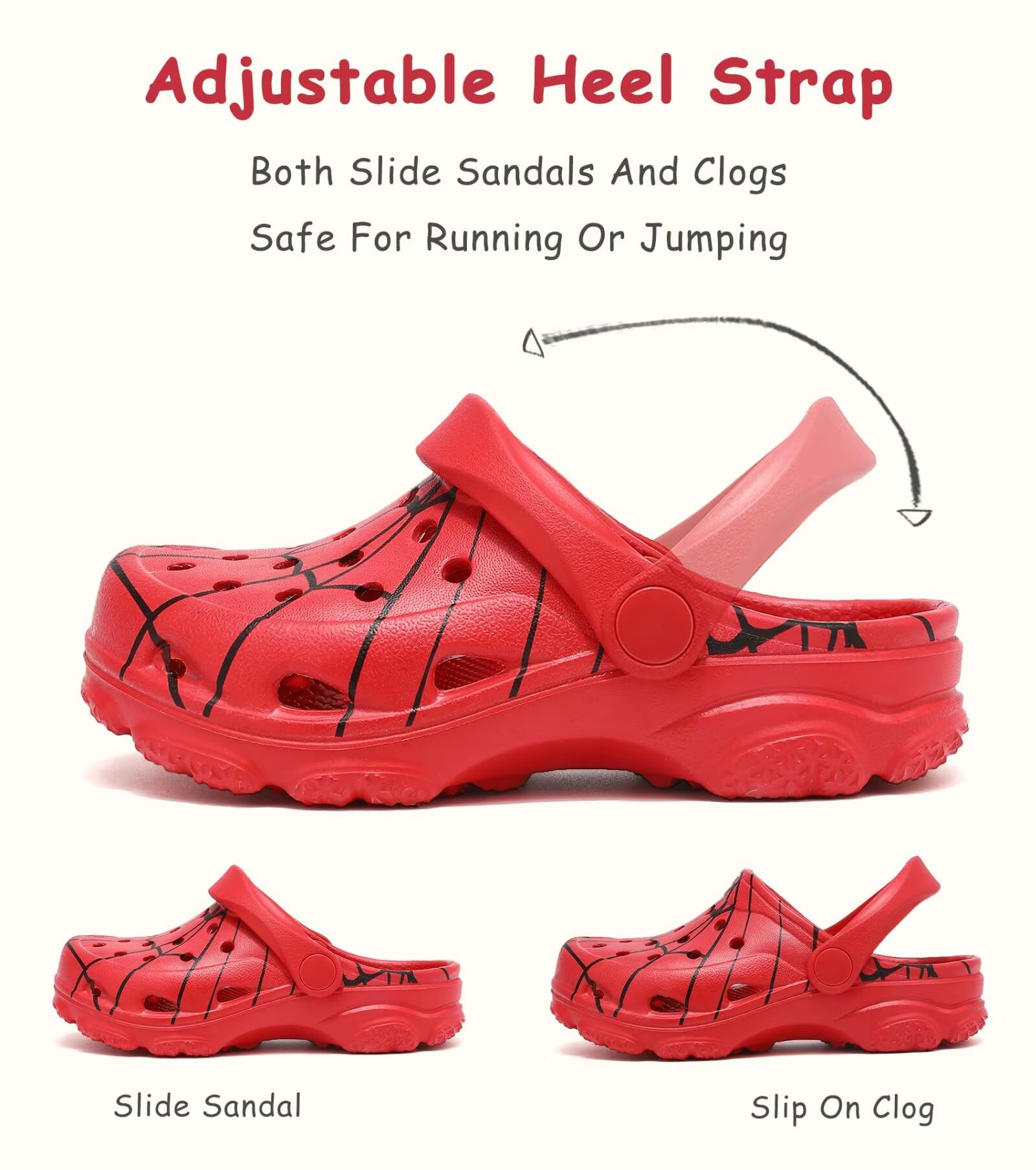 Stylish Appearance: We offer a variety of style for you to choose from: tie dye, camo, spider, high shine, rainbow. Step out in style with kids clogs that effortlessly blend fashion with comfort.