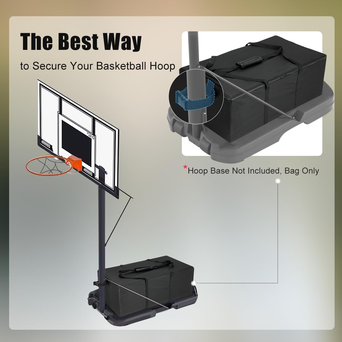High-Capacity Basketball Goal Weight Bag: With dimensions of 28.3"L x 16.1"W x 9.8"H, these weighted sand bags can be filled with sand or other heavy materials. The total weight can exceed 300 lbs depending on fill density, greatly enhancing the stability of your basketball hoop outdoor setup.