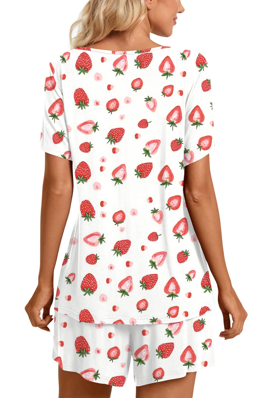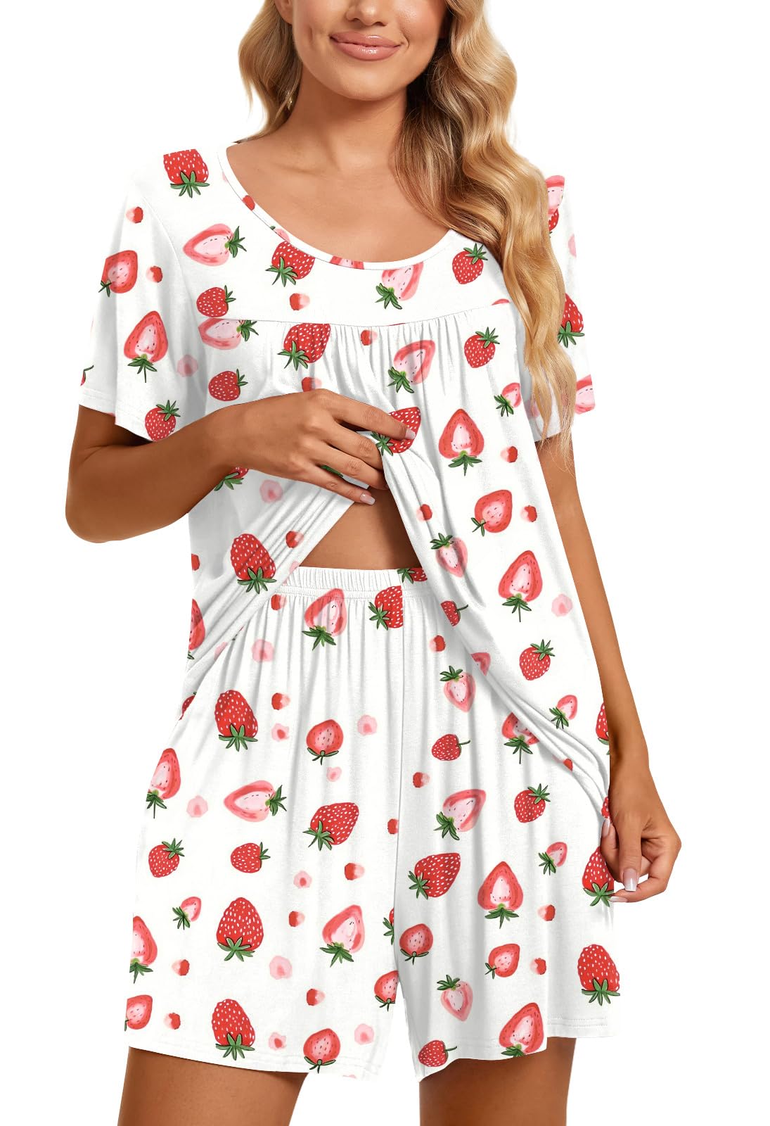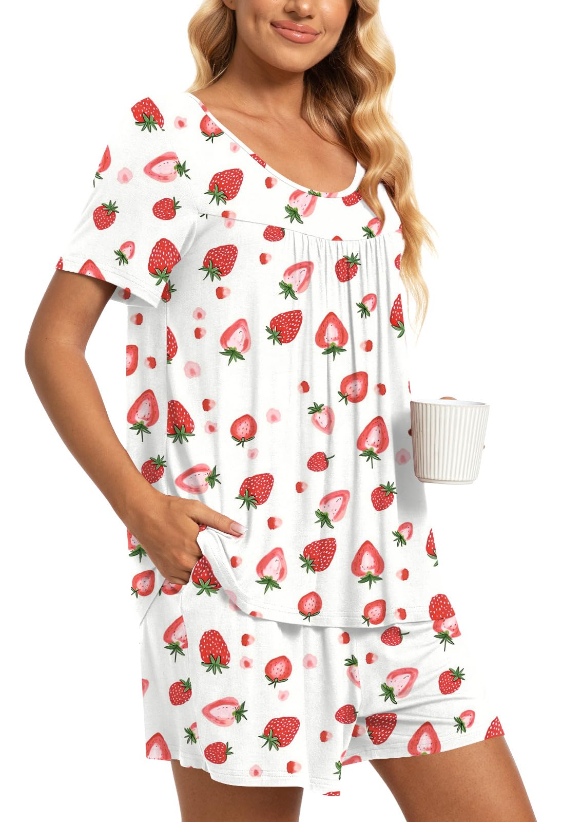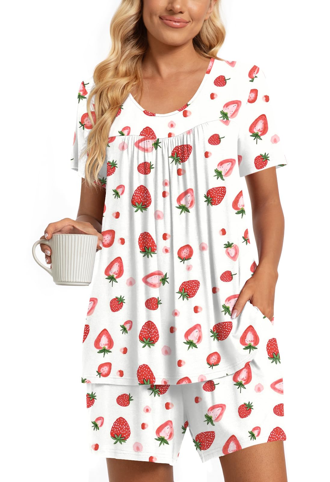 Fashion-Simple Design: Cute two piece outfits, short sleeve tops, soft nightwear, scoop neck and front pleated detailed design. Elastic waistband shorts, casual loose comfy, graceful and easeful