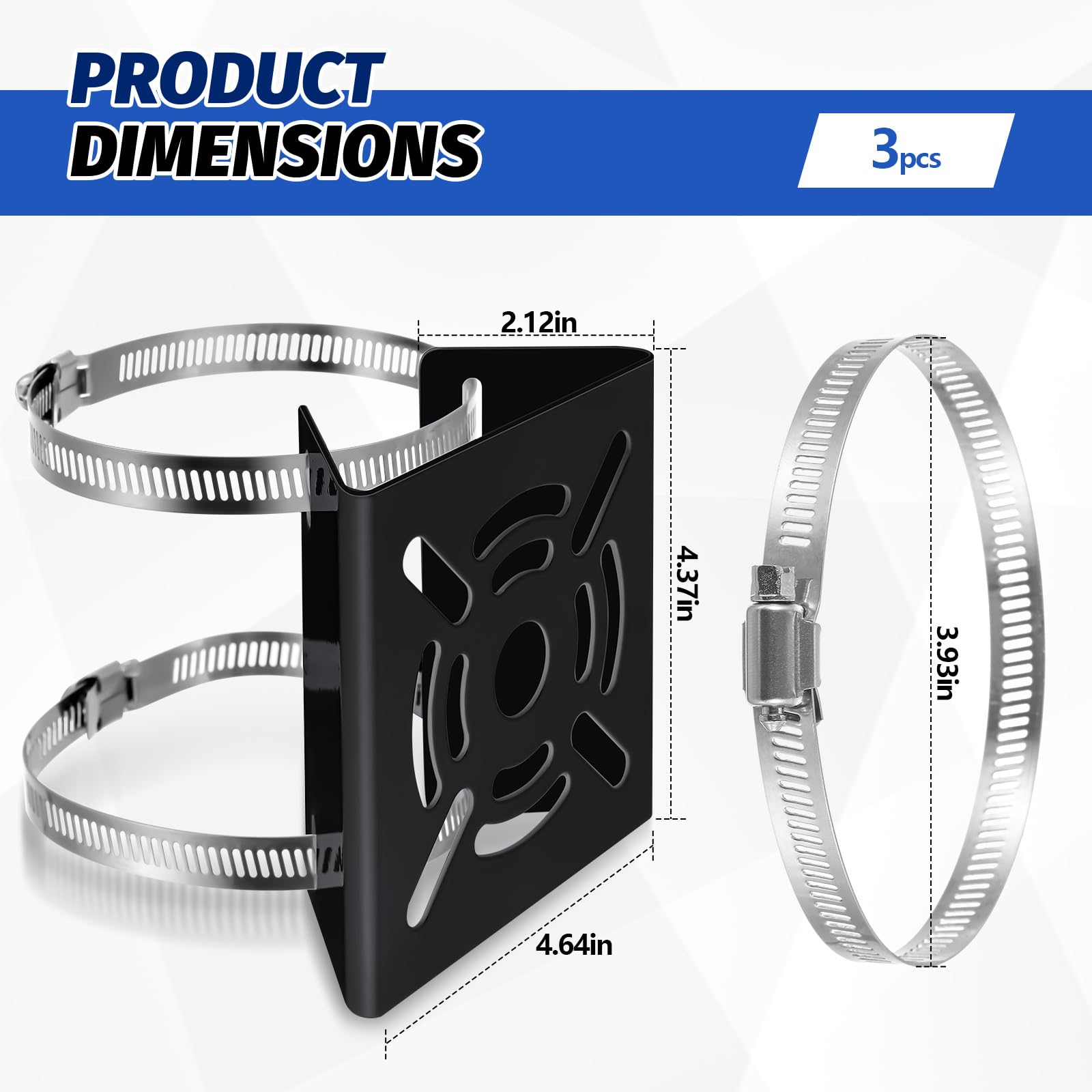 Flexible and Adjustable Design: with brackets about 4.64 x 4.37 x 2.12 inches/ 118 x 111 x 54 mm, the stainless steel loop for pole mounting of 0-3.9 inch/ 0-100 mm in the set is easily adjustable; No matter the dimensions of different posts, our versatile rings act as an effective adapter, enabling users to securely mount their tools as needed