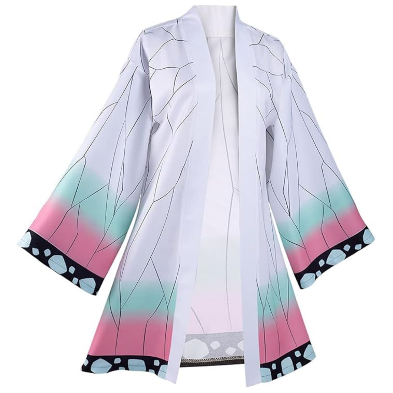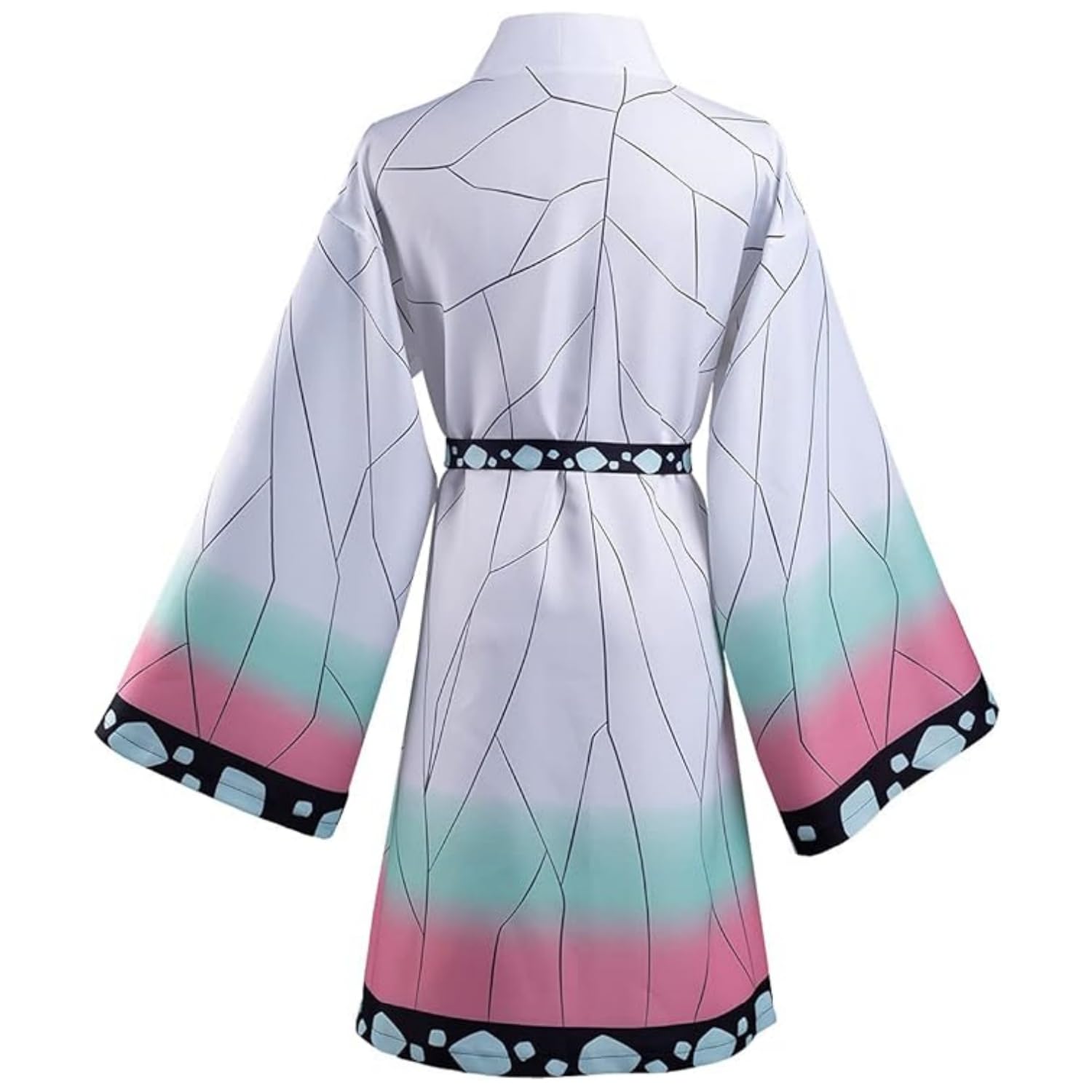 Shinobu Robe Adult Pink Cloak Kochou Shinobu Cosplay Costume Color Block Kimono Cardigan Jacket Earrings Belt Headwear Set for Women and Men.