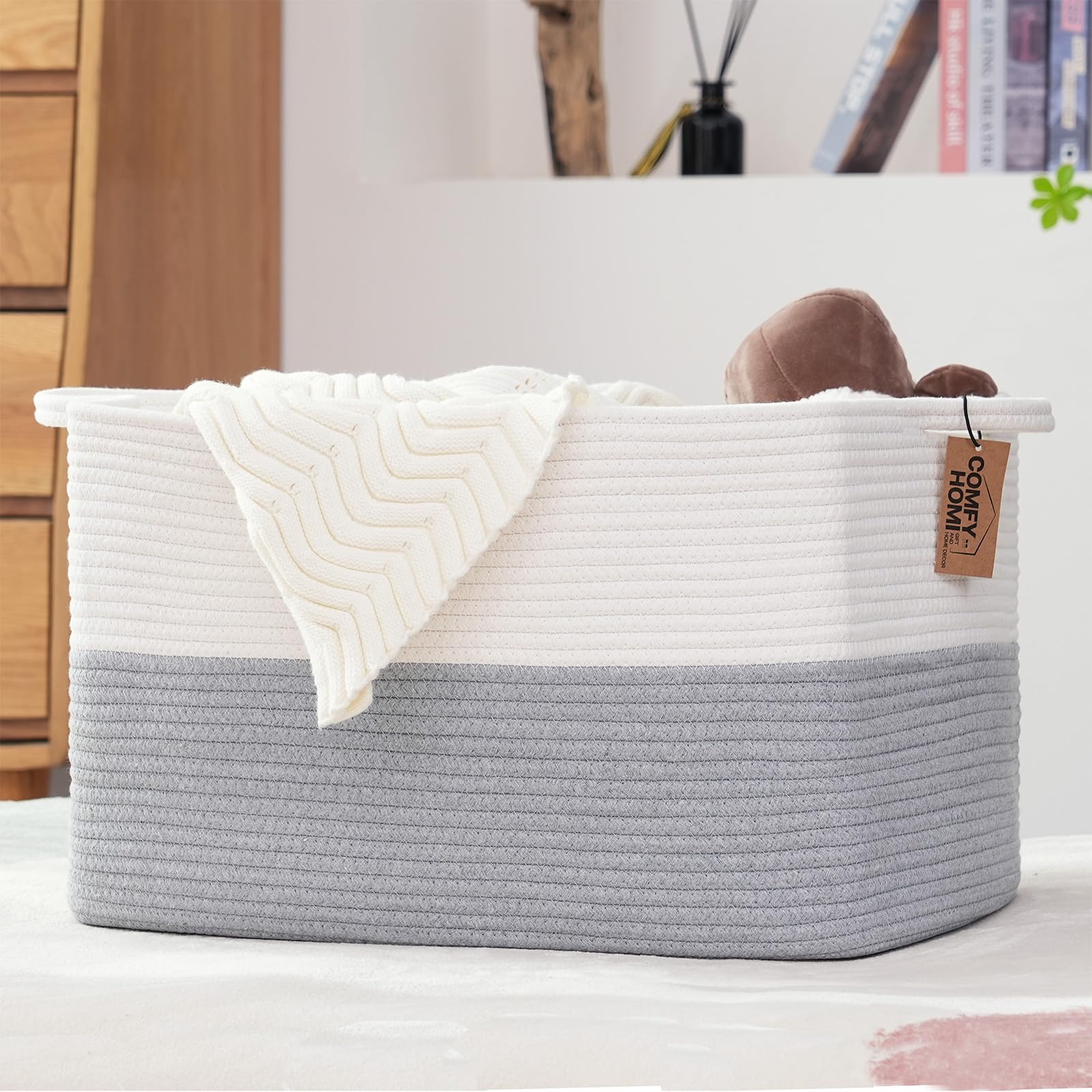 ♡【High Quality】This 22''LX15''WX13''H cotton rope basket is more durable than other plastic baskets. COMFY-HOMI’s large rope baskets for storage are made by durable and healthy cotton rope, which is not weak like other baskets, which means you can get sturdy but soft baskets in your life.