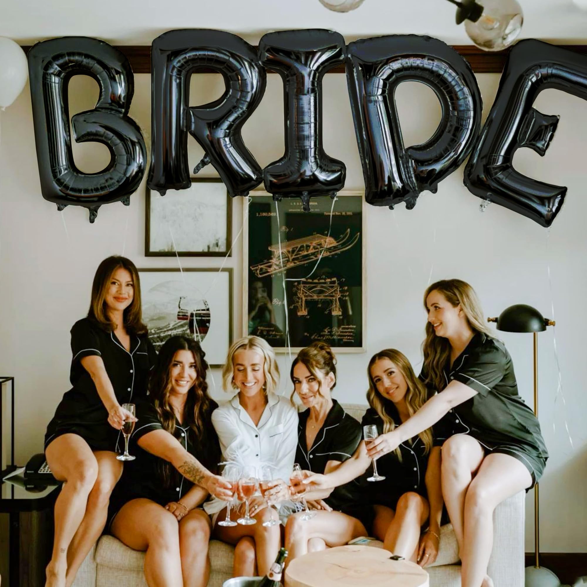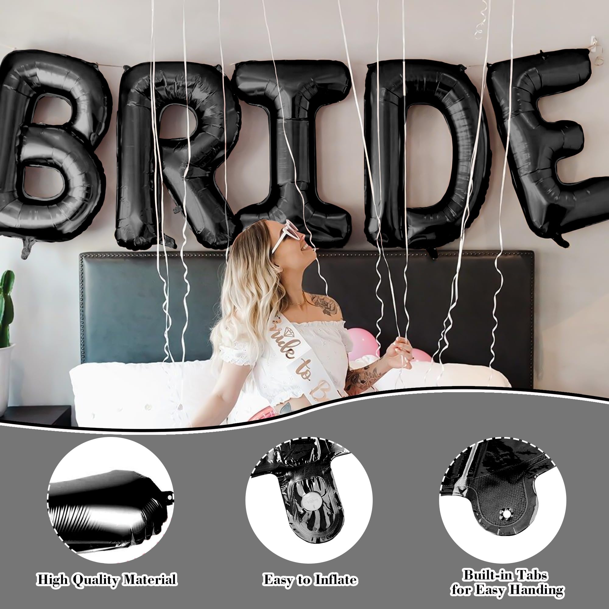 Sparkling Bride Balloon: 40-inch black letter balloon with an inflating straw and string. Elevate your bride or die party with this chic and glamorous decoration, adding style and elegance effortlessly