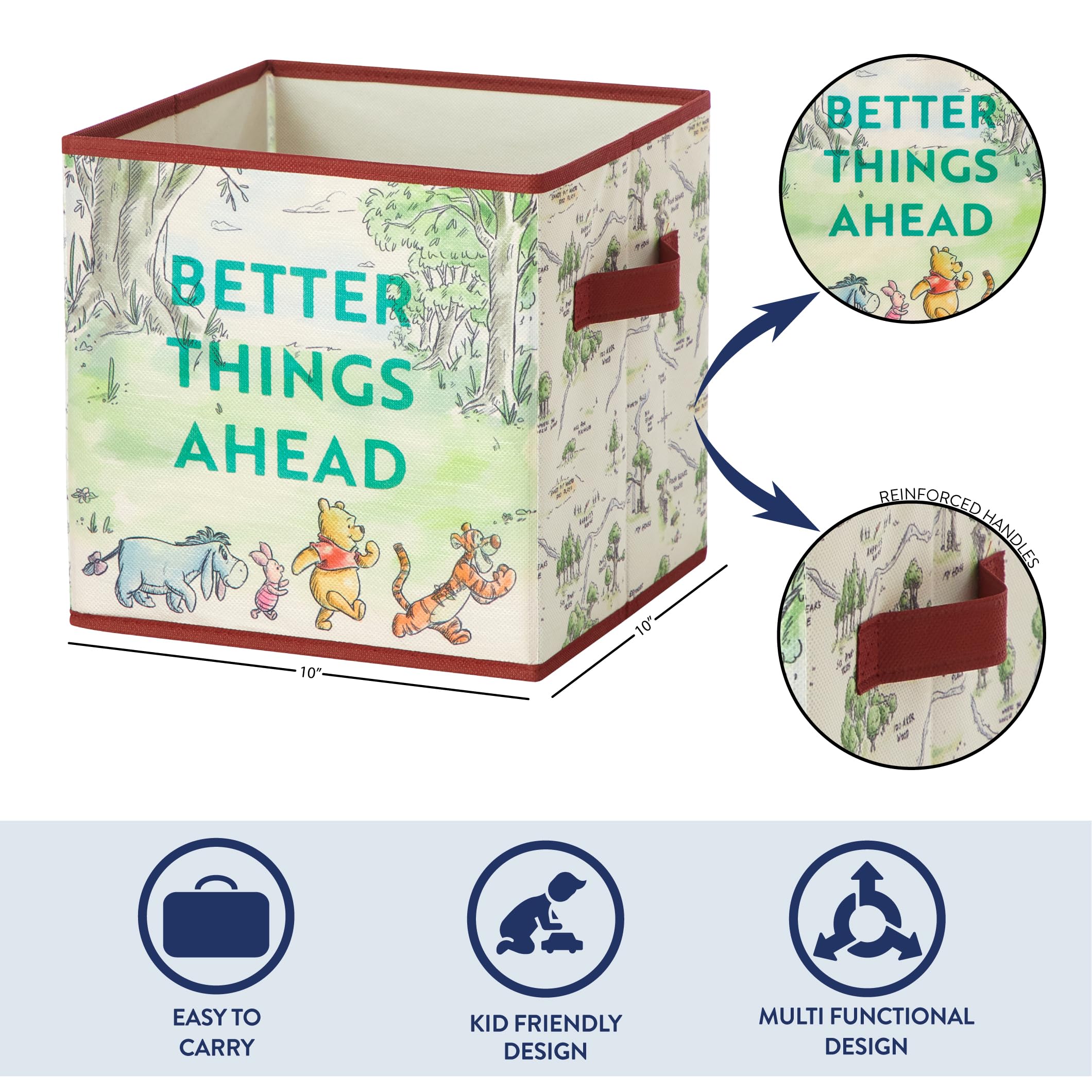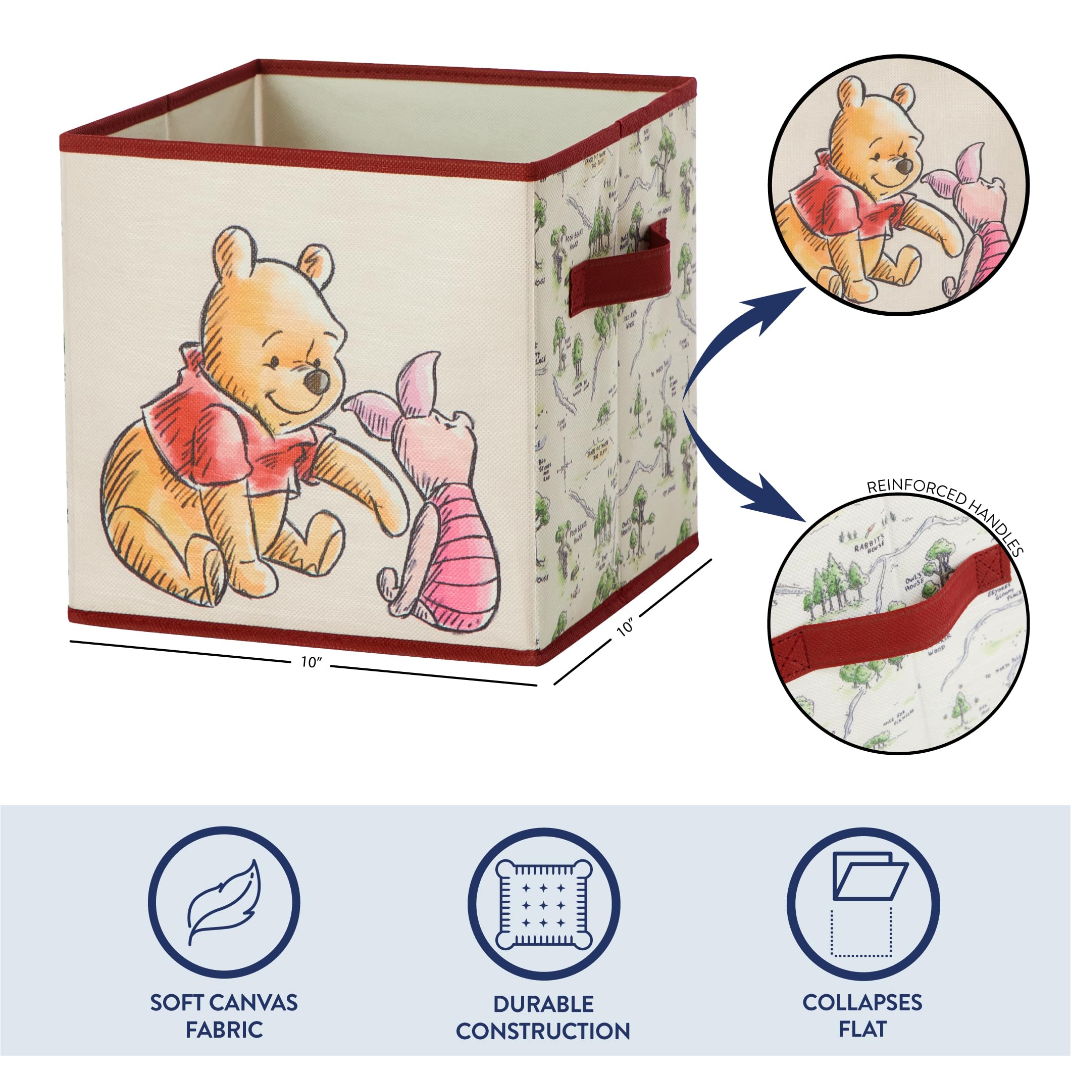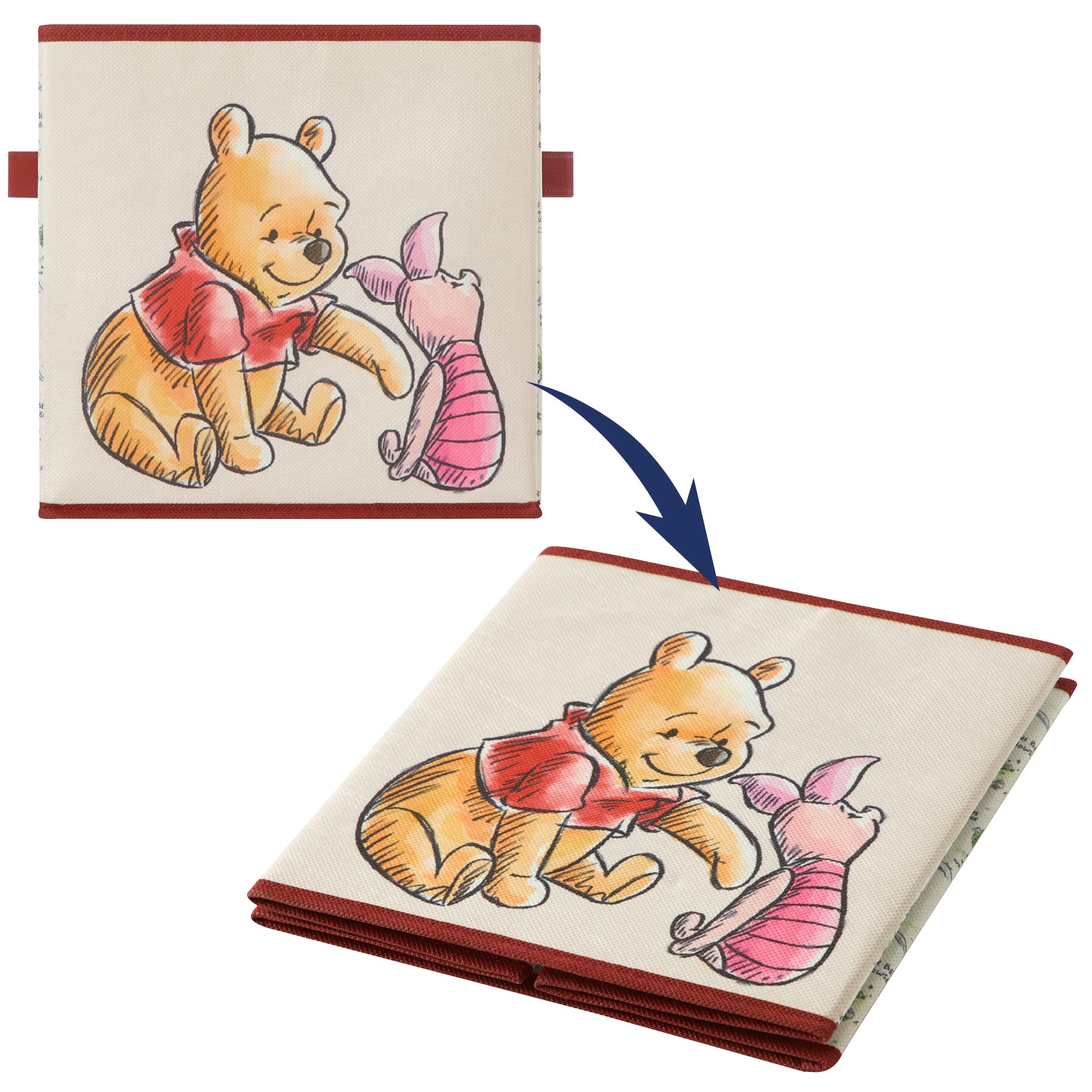 KID FRIENDLY DESIGN: These spacious storage cubes features adorable graphics from iconic Disney Winnie the Pooh. The perfect addition to your child’s bedroom, closet or playroom. The design on these durable cubes will add a pop of color along with your child’s favorite characters, Winnie the Pooh, Piglet, Tigger and Eeyor. These spacious cubes is an easy way to maintain clutter while adding a playful accent.