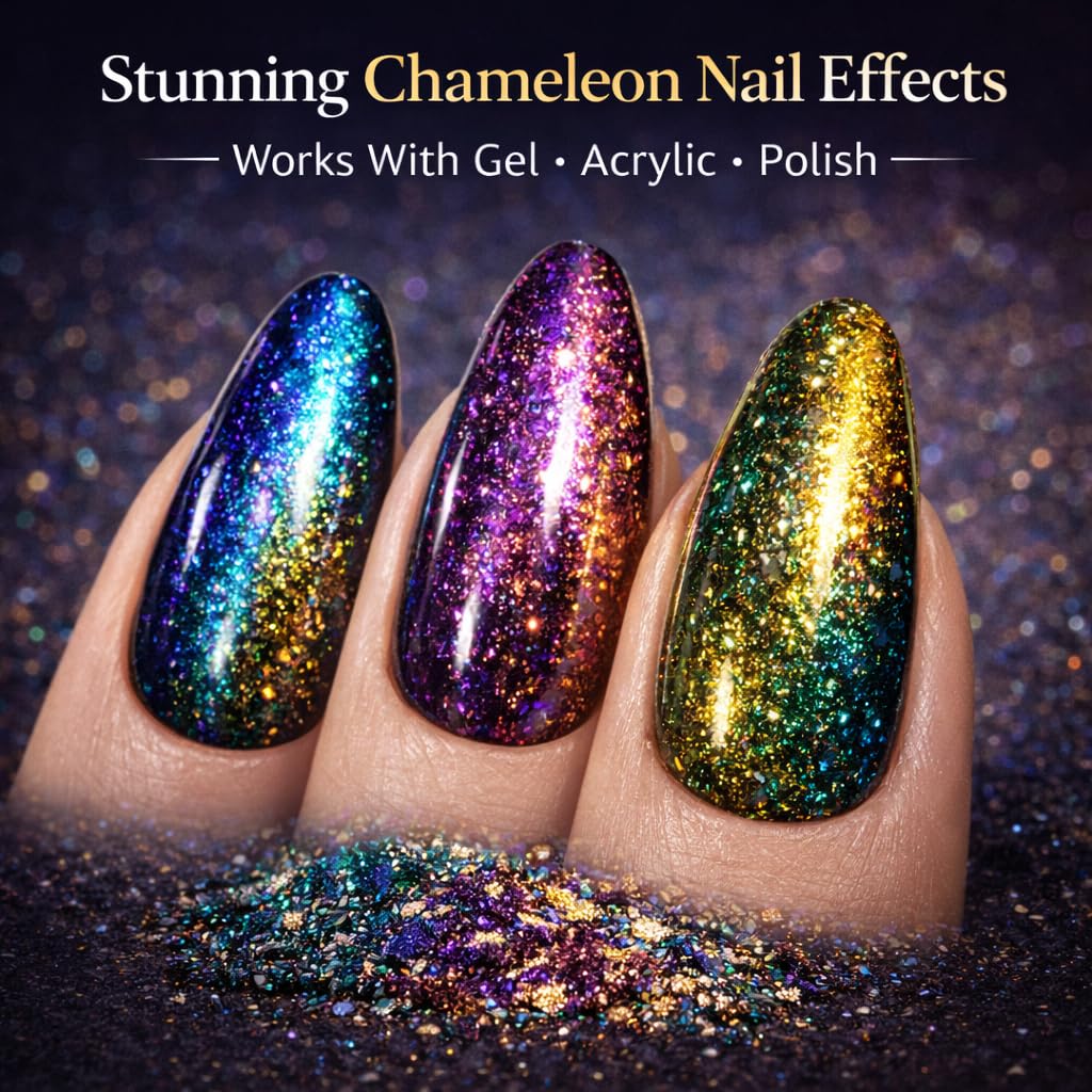 【 💚 CHROME FLAKE QUALITY 】- Color shift chroma flakes are perfect for chrome Painting, Candle Making, Bath Bombs, Soap Colorant, Slime Making. Chameleon mica powder for epoxy is ideal for the nails, eyeshadow, crafts, hair, face, body, festivals, and raves.