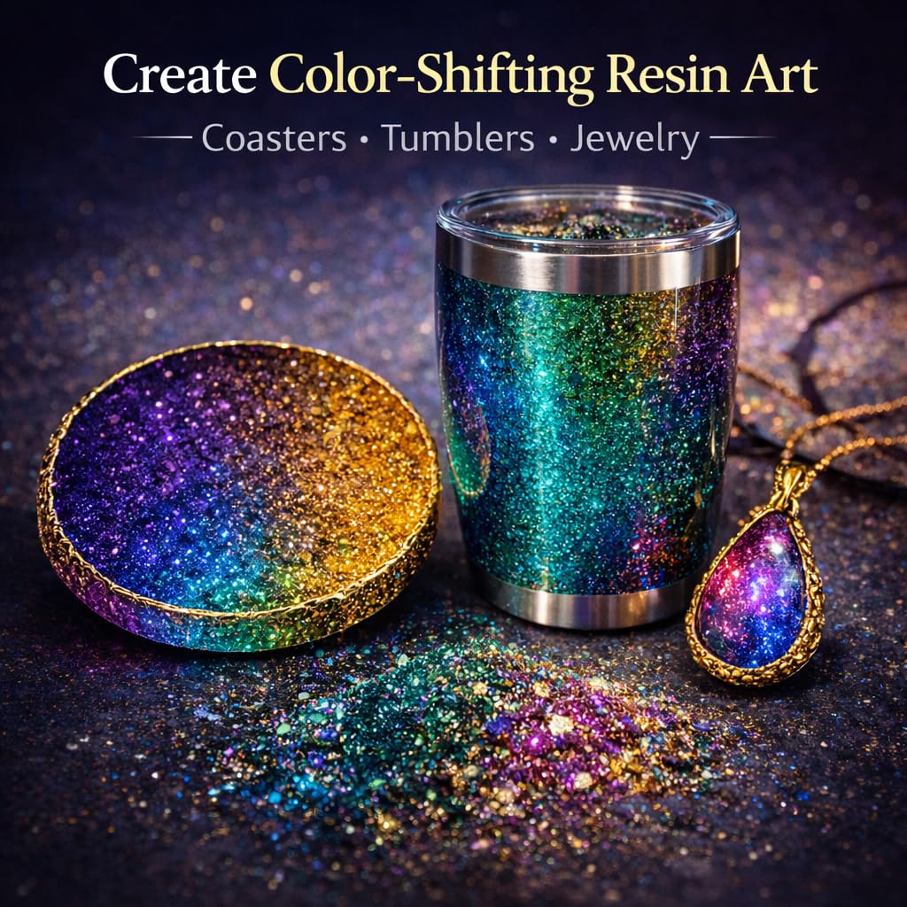 【 💛 CHAMELEON FLAKES FOR RESIN 】- with colorshift flakes, you can make any project shine with a holographic effect.Use it for Epoxy Resin, Tumblers Making, Molds, Painting, Paint Dye. Our chameleon flakes for epoxy resin are often used as a color shifting mica powder for epoxy resin, a professional quality will make your project stand out from others!