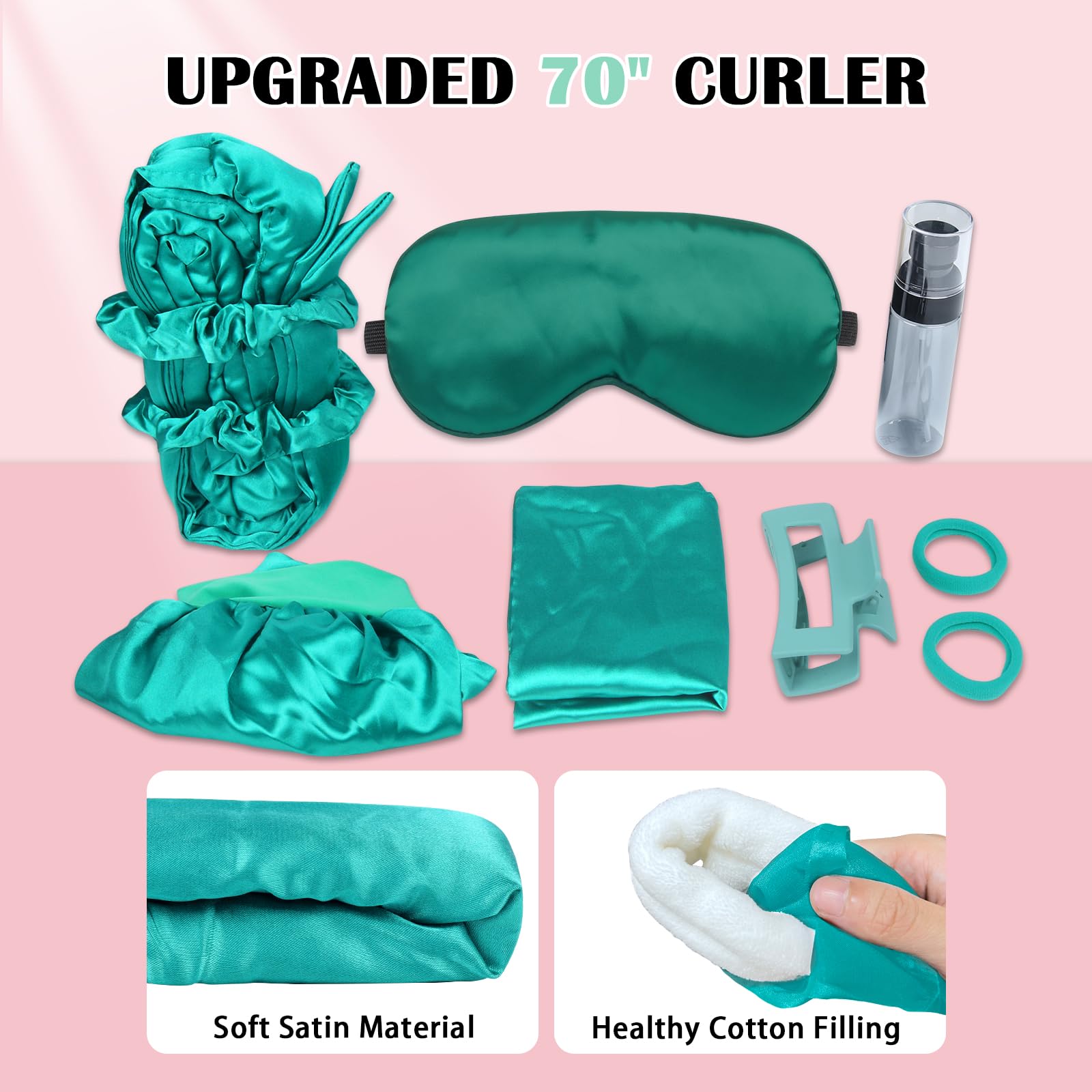 Thoughtful Set for Women: Our heatless curling set includes 10 items: 1 x 70-inch long satin curling rod headband, 1 x satin hair bonnet for sleep, 1 x silk satin sleep eye mask, 1 x hair clip, 2 x satin hair ties, 2 x elastic hair ties, 1 x satin storage bag, and 1 x spray bottle. This all-in-one curling rods set is packaged in an exquisite box, making it the perfect present for your wife, mother, daughter, friends, or colleagues