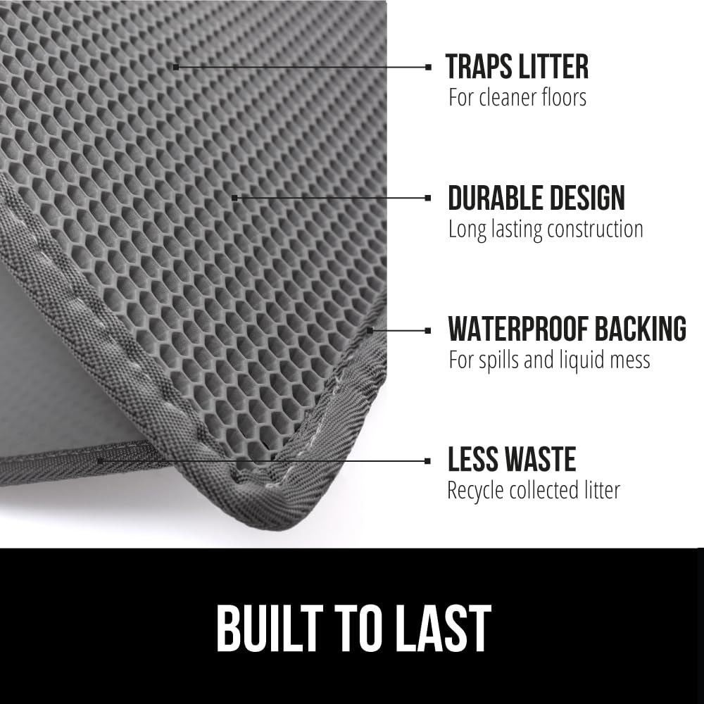 TRAPS LITTER: the Gorilla Grip mat traps even more litter as your cat exits the litter box, litter that is stuck to its paws will be captured within the large honeycomb holes on the top layer of the mat; the litter then falls through the holes to become trapped in the bottom, leak proof layer