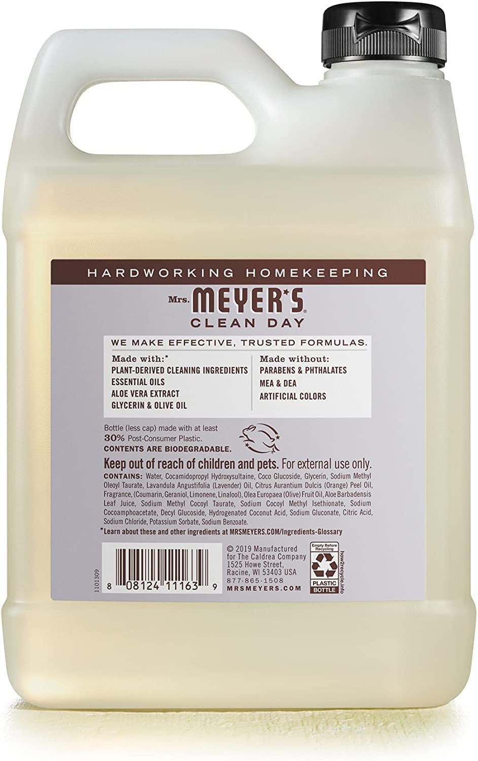 Mrs. Meyerβs Clean Day Liquid Hand Soap is specifically made to clean and freshen hands without drying, while also providing a special, singular scent. This hardworking liquid soap formula contains olive oil, aloe vera, essential oils and other thoughtfully chosen ingredients to clean and freshen busy hands. Also available as a 33 ounce refill in Basil, Geranium, Honeysuckle, Lavender, Lemon Verbena, Oat Blossom, Peony, Plum Blossom, and Rain Water scents.