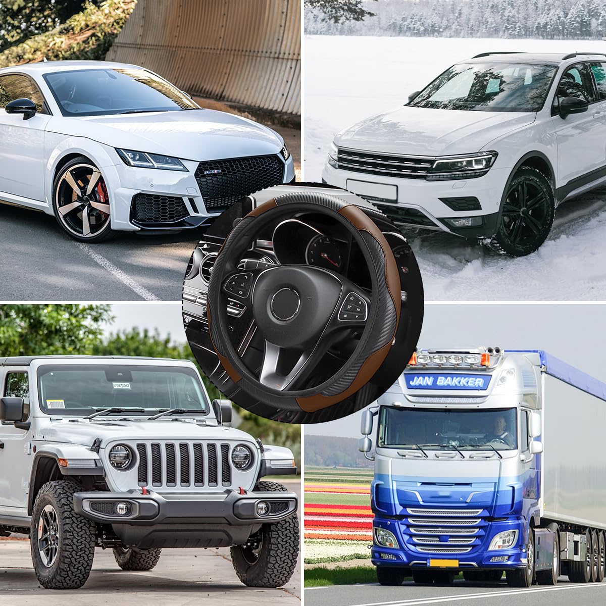 【Perfect Fit】: The steering wheel cover is suitable for all steering wheels with diameters from 14.5 inches to 15 inches and can be used on 98% of automobiles. Whether your car is a sedan, suv, van or other vehicle, you can dress up and protect your steering wheel with this stylish steering wheel protector.