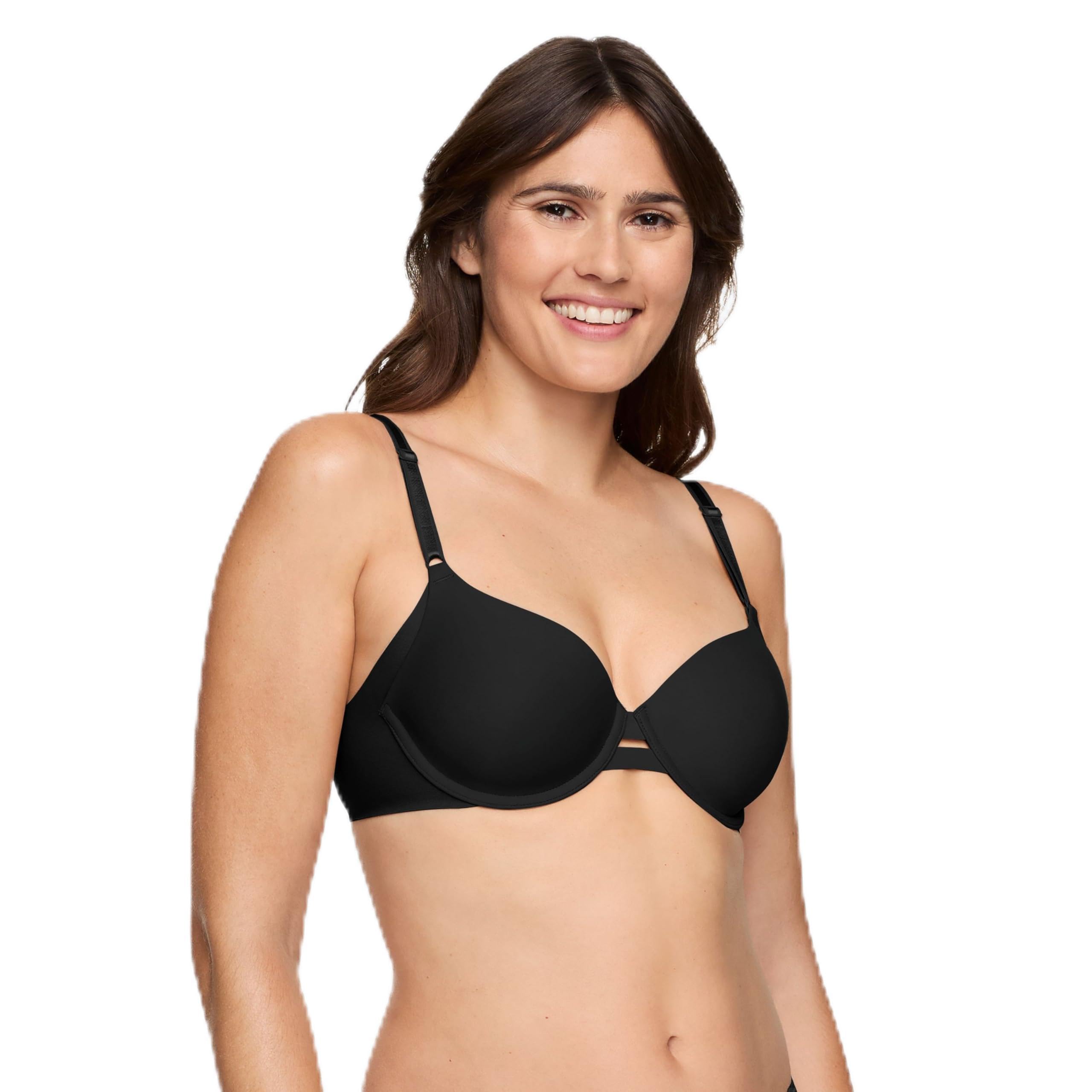 Description Smooth things over with this Warners® Blissful Benefits underwire lightly-lined t-shirt bra with side-smoothing panels and elastic-free sides for a seamless look. Flexible contour cups and convenient front-adjustable straps provide the perfect fit for wear-all-day comfort and support.