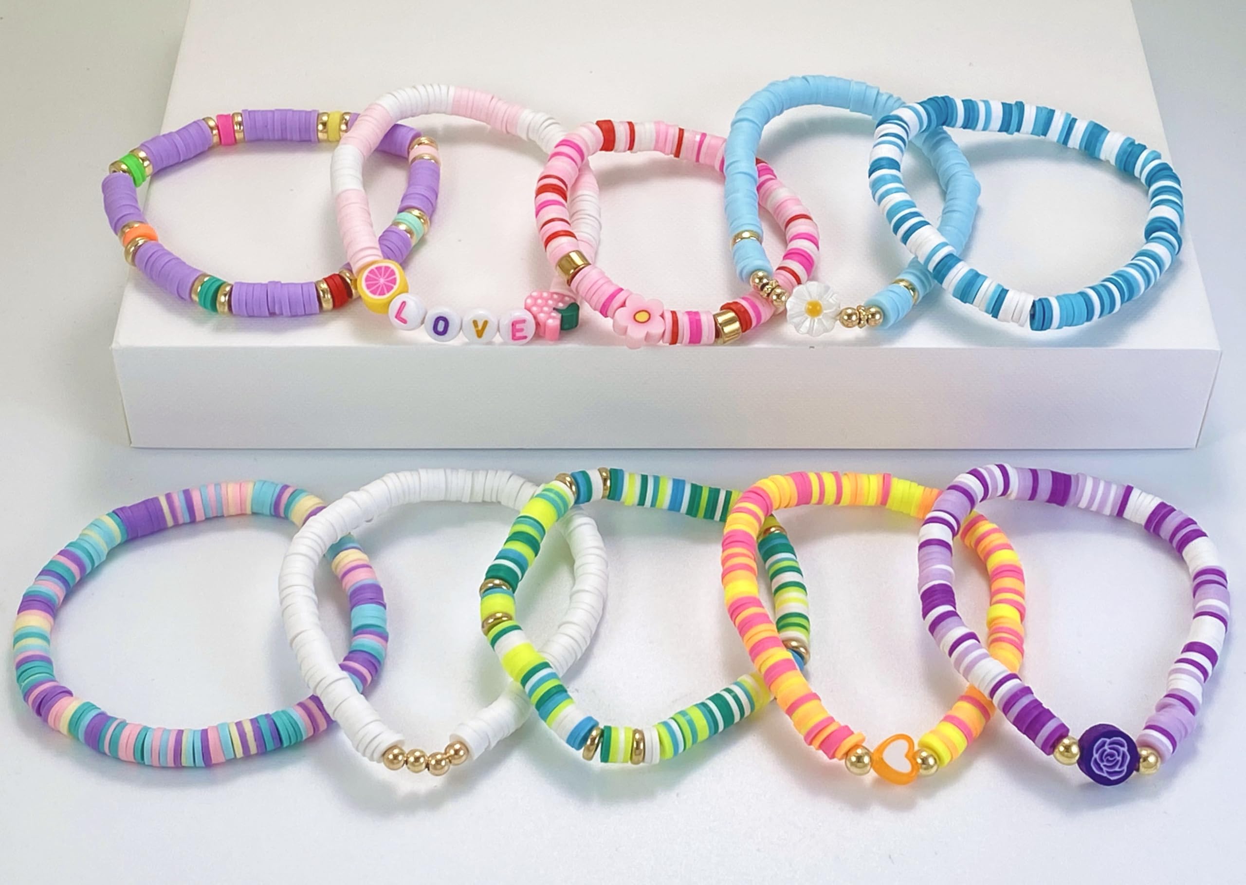 Ten Different Clay Bead Bracelets: It comes with 10 pieces of colorful bracelets. The various beach styles will match with your girls' summer outfits