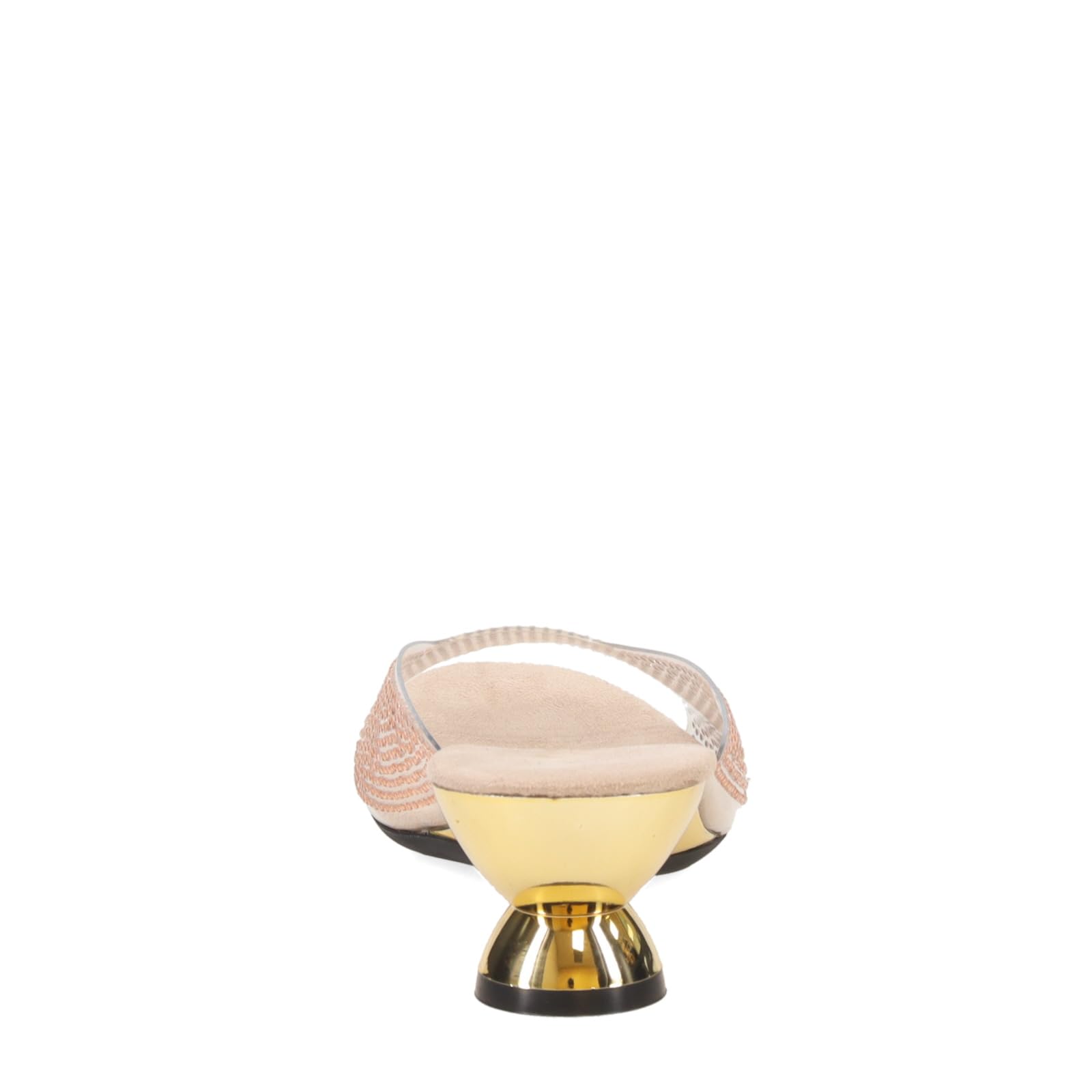 Description Crafted in Italy, these crystal-adorned slides make for an elegant addition to any evening wardrobe. The iridescent crystals reflect a spectrum of hues for a dazzling look. Translucent uppers with dazzling crystals Slide style sandal for an easy on and offPadded footbed Low sculpted metallic heelManmade outsole