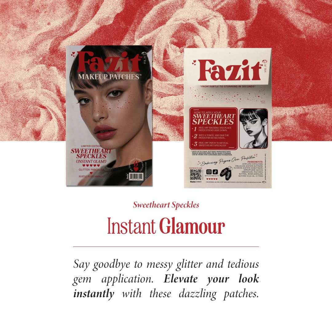 EASY TO APPLY - Applying our Fazit facial glitter speckle patches is effortless! Remove the backing by peeling it off, then apply the sticky side to your skin. After that, dampen a towel and apply pressure to the patch for sixty seconds. When the make up patch is finally removed, reveal your gorgeous new glitter speckles. It's easy - no mess, no fuss, just natural-looking glitter cosmetic speckles in minutes. Ideal for those wanting to enhance their look with a touch of glitter sparkle!