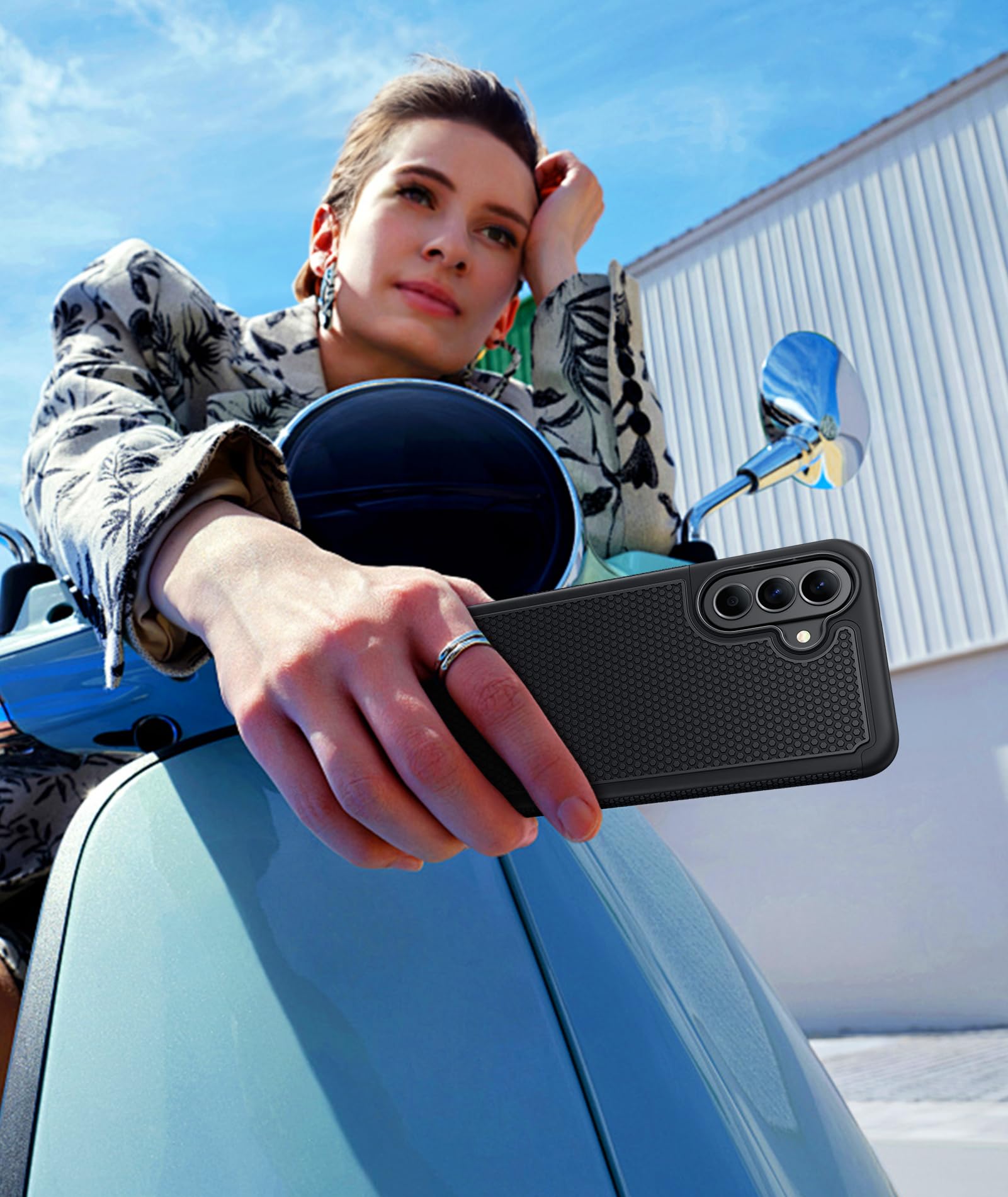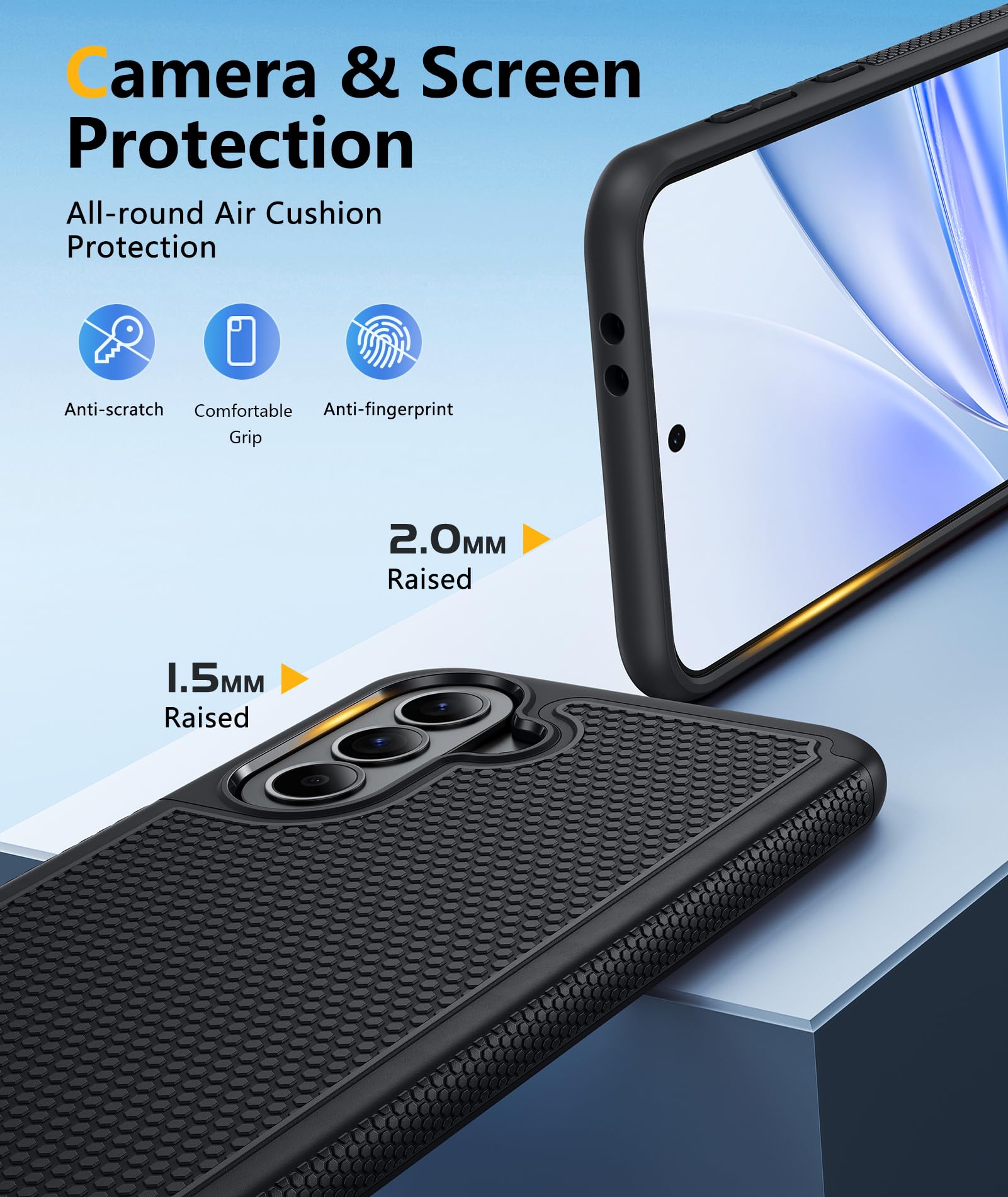 Practical Design: Combines grip and anti-slip design with texture on sides and back for a secure hold, reducing accidental drops, matte finish that resists fingerprints, paired with soft-touch, responsive buttons