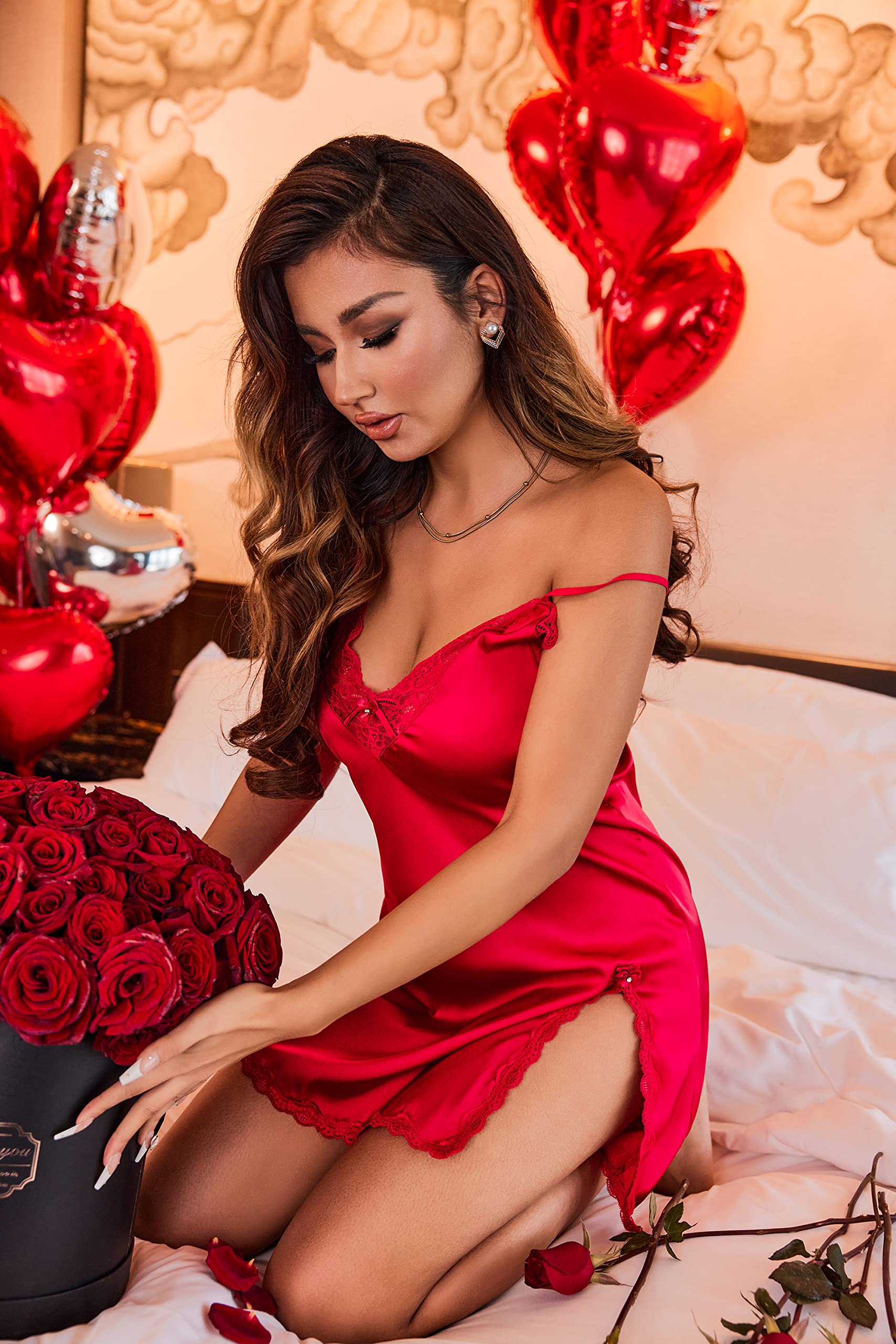 Occasions:Womens A-line style bridal lingerie, V neck babydoll, lace lingerie sleep dress, adjustable straps chemise sleepwear is a perfect gift for yourself or friends as a sleepwear, nightwear, loungwear, pajamas. Perfect for Christmas party, Valentine’s Day, date nights, wedding nights, honeymoon nights, role play and lingerie party