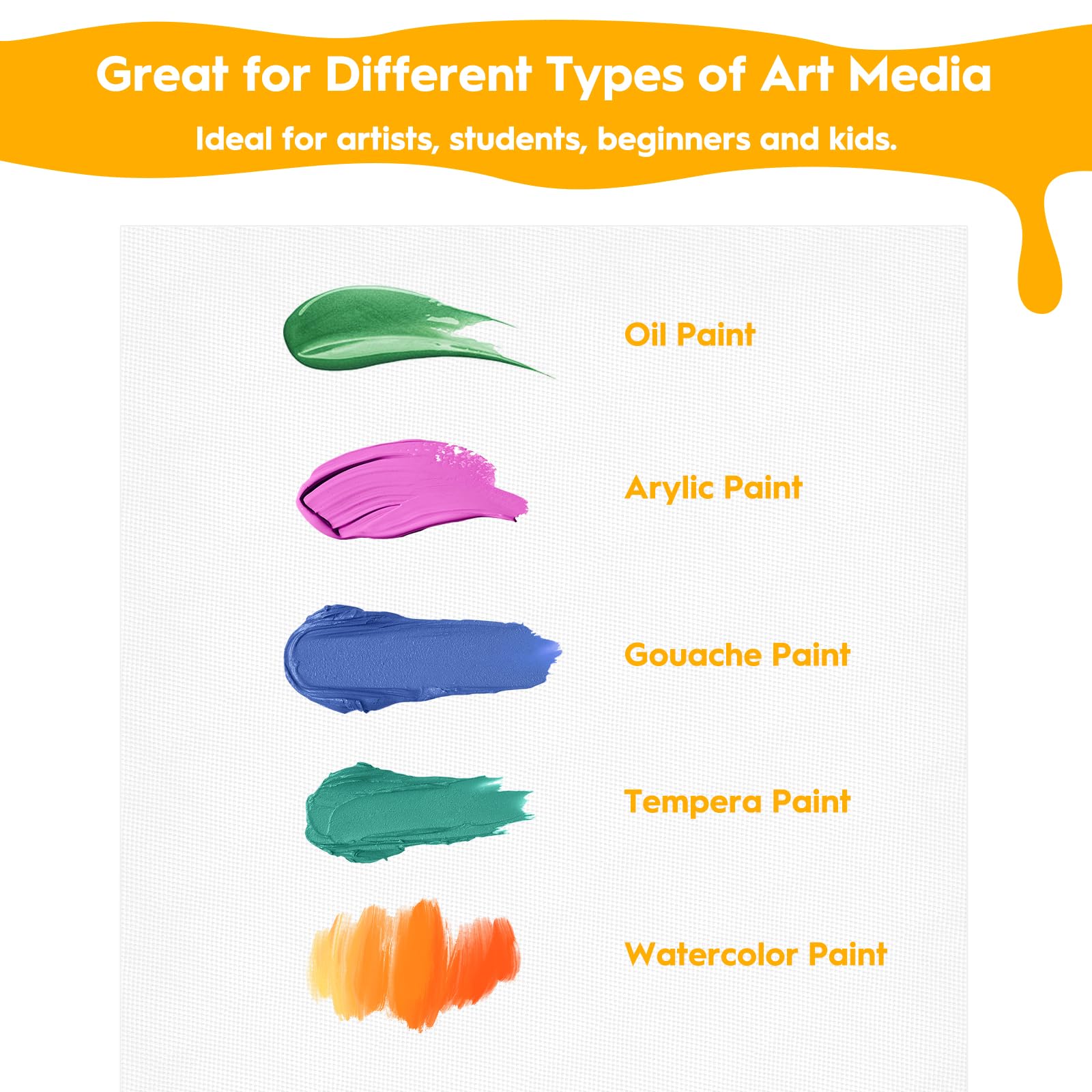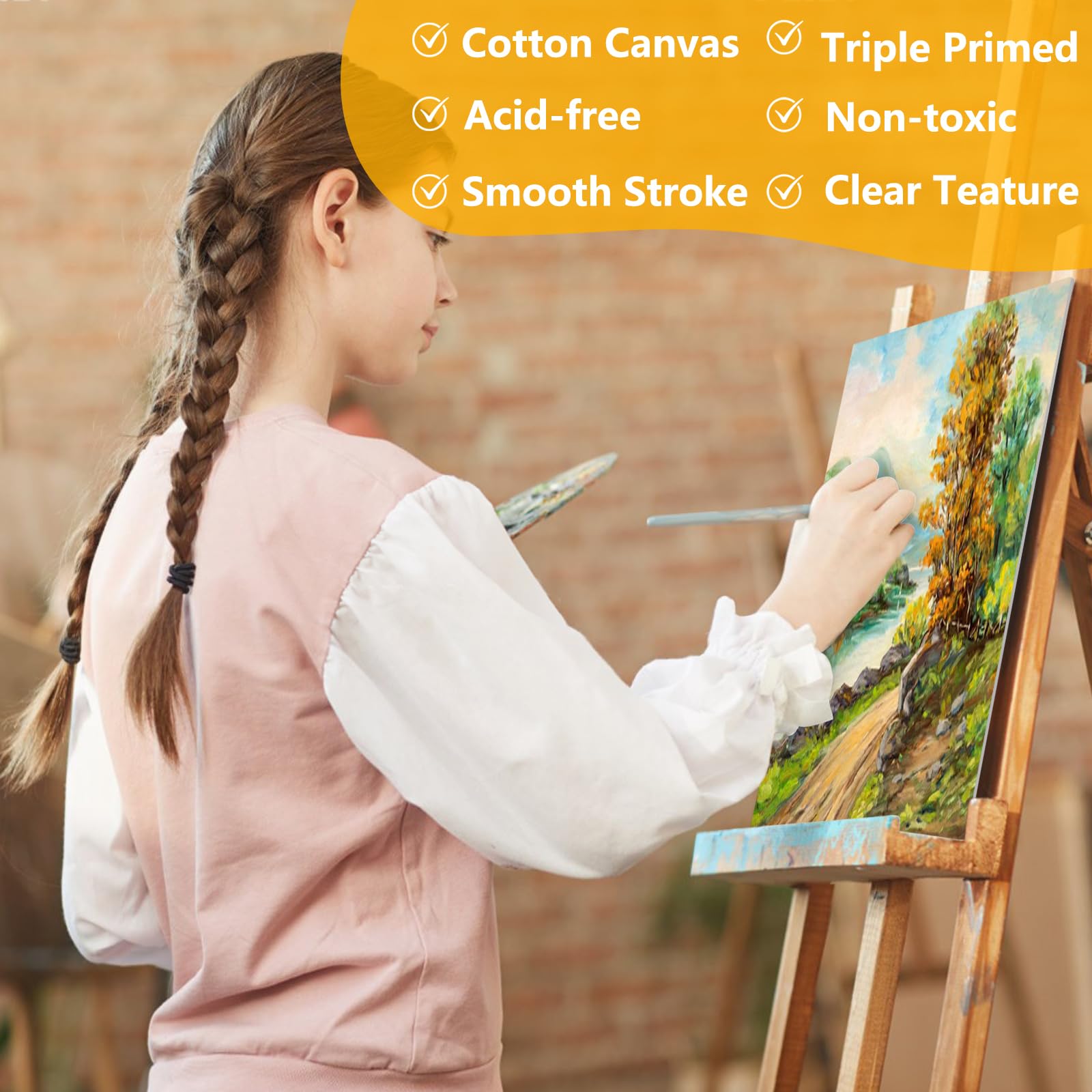 Quality Materials: Our 8x10 canvas for painting is made from acid-free cotton fabric, which has a good surface texture and prevents the pigment from being absorbed. The bottom plate of the canvas is made of wood pulp material making it sturdy, durable, and not easy to break.