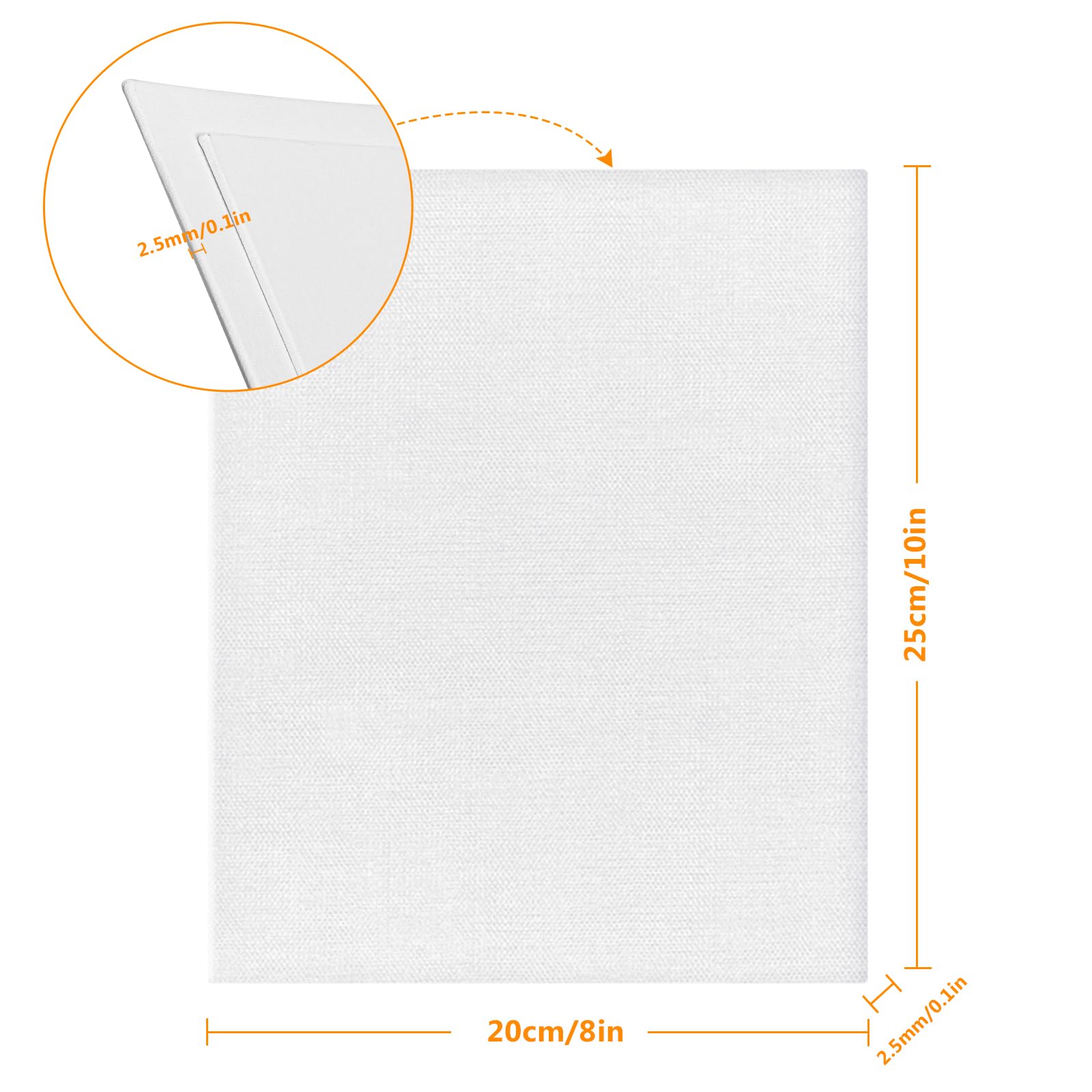 Product Information: Our painting canvas includes 5 pieces of blank painting canvas. Canvas for painting size: 8x10 inch; Thickness: 2.5 mm. Lightweight and easy to store and carry.