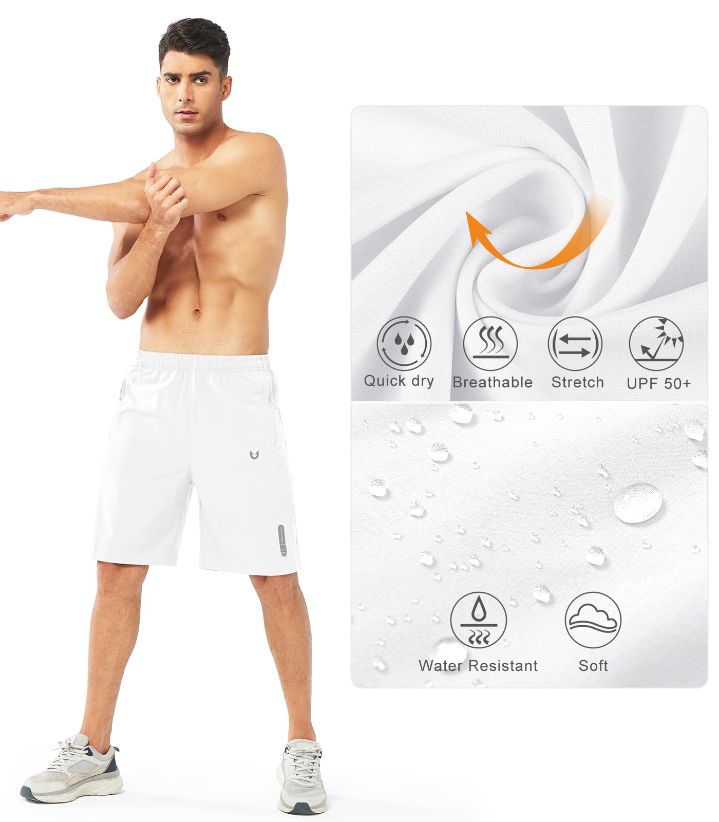 Lightweight & Breathability: Men's athletic hiking Shorts are made quality 4-Way Stretch/breathable and quick-drying fabric helps to wick away moisture and dry quickly keep you cool A synthetic of polyester and spandex can be very durable, abrasion-resistant, and stretchy enough to allow for better mobility