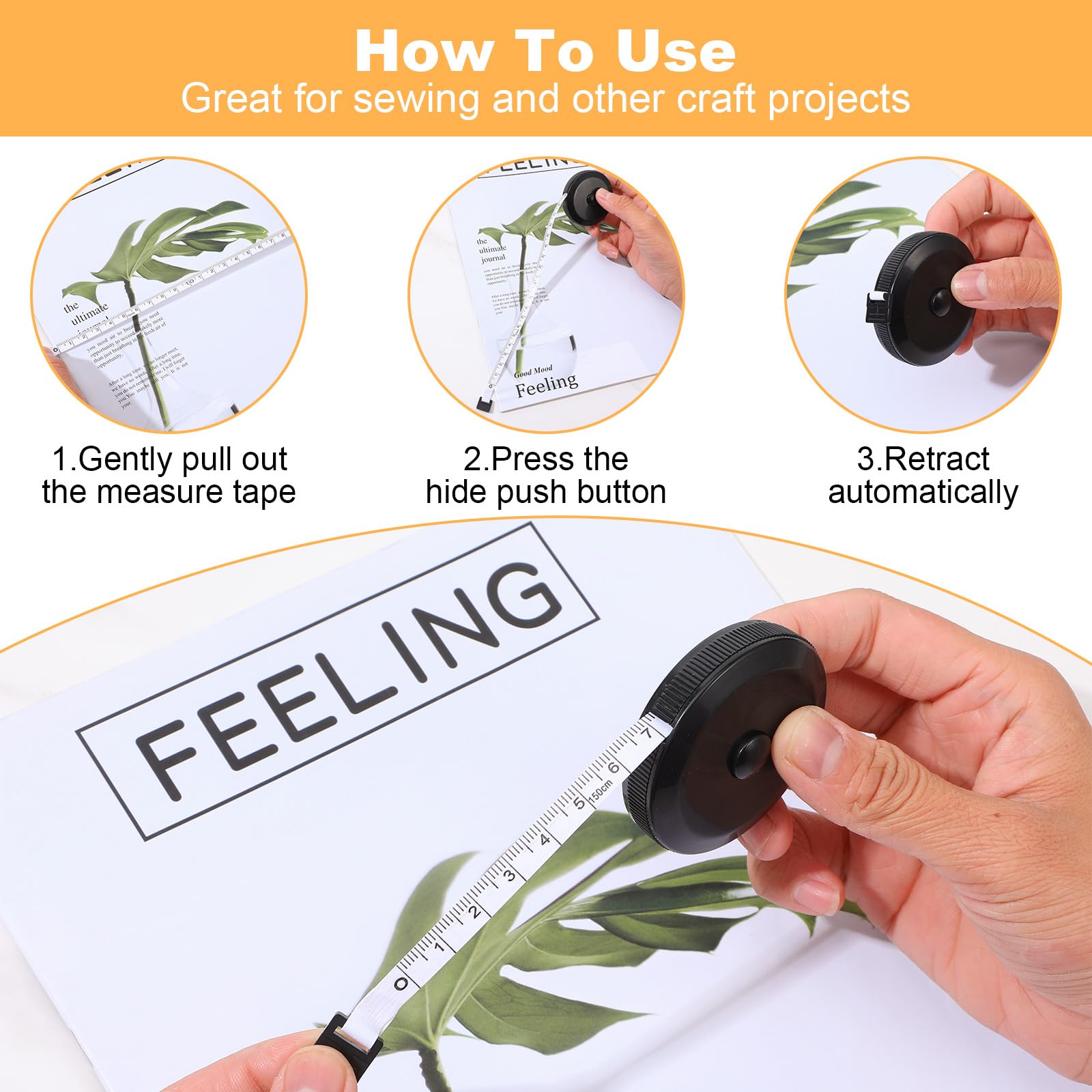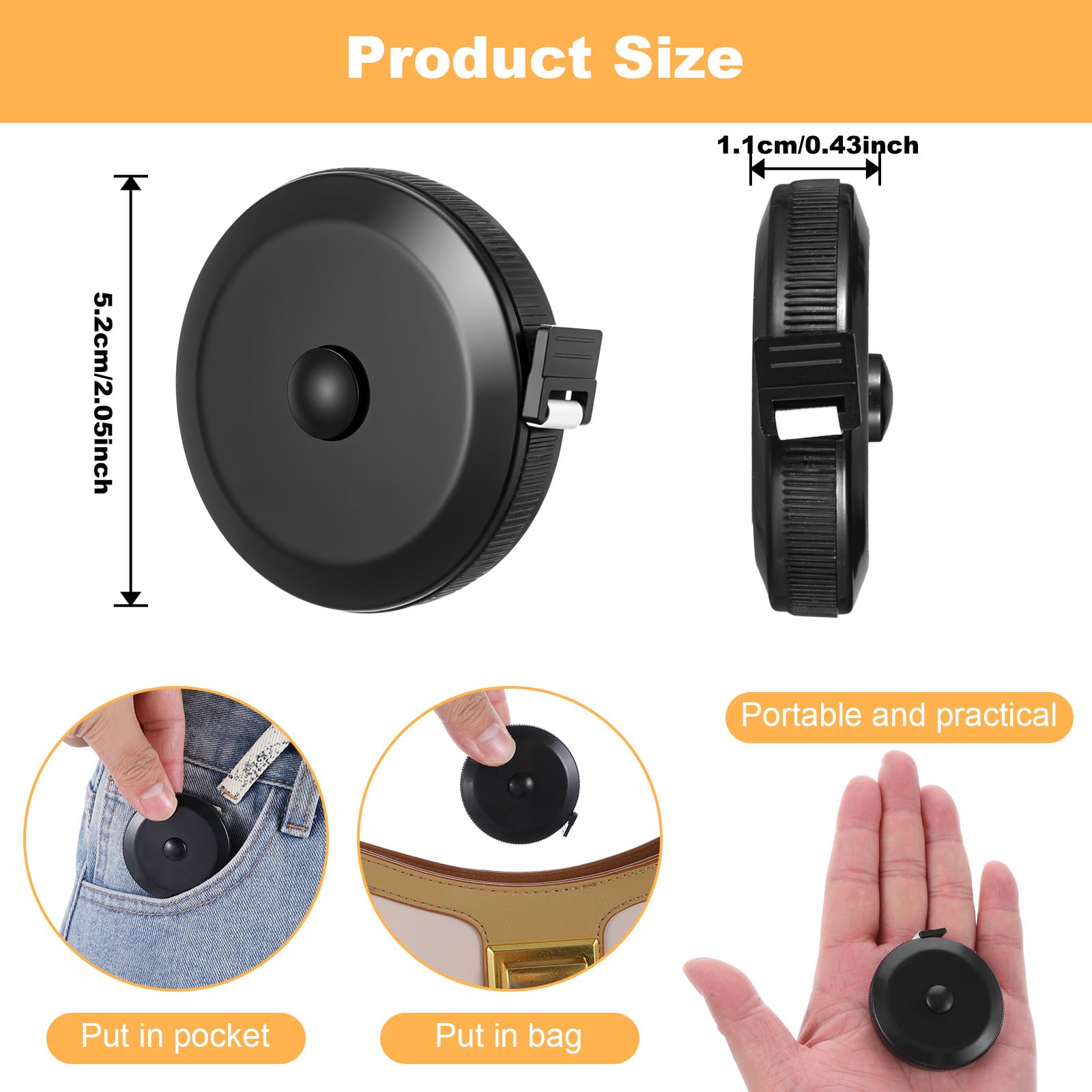 Features: Dual-Scale Clarity: Features large, laser-etched markings in inches/cm on both sides. The high-contrast black tape provides high readability in low light, eliminating conversion errors during tailoring or body measurements Multi-Purpose Accuracy: Handles fabric straightening, knitting gauges, and fitness tracking. The flexible tape contours to body curves and flat surfaces equally, replacing rigid rulers in craft projects Specifications: Material: Plastic Color: Black Size: about 2x0.5 inch Package includes: 35 x Tape Measure Notes: Manual measurement, please allow slight errors on size. The color may exist a slight difference due to different screen displays.